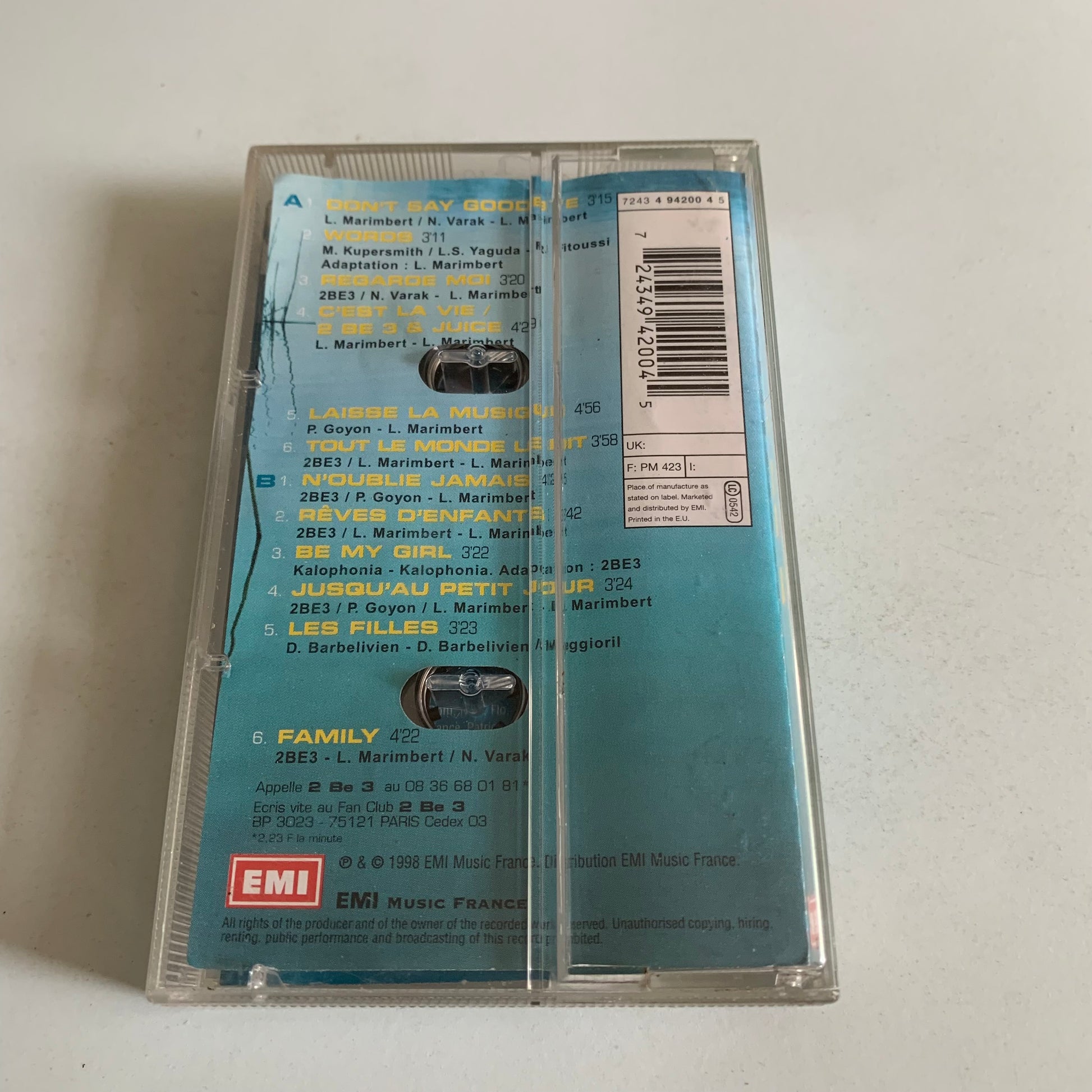 Cette cassette audio du groupe 2 Be 3 est parfaite pour les fans de musique nostalgiques. Avec leur album 2 Be 3 de 1998, vous pourrez revivre l'ambiance musicale de cette époque. Profitez de la qualité audio de cette cassette pour un voyage dans le temps !