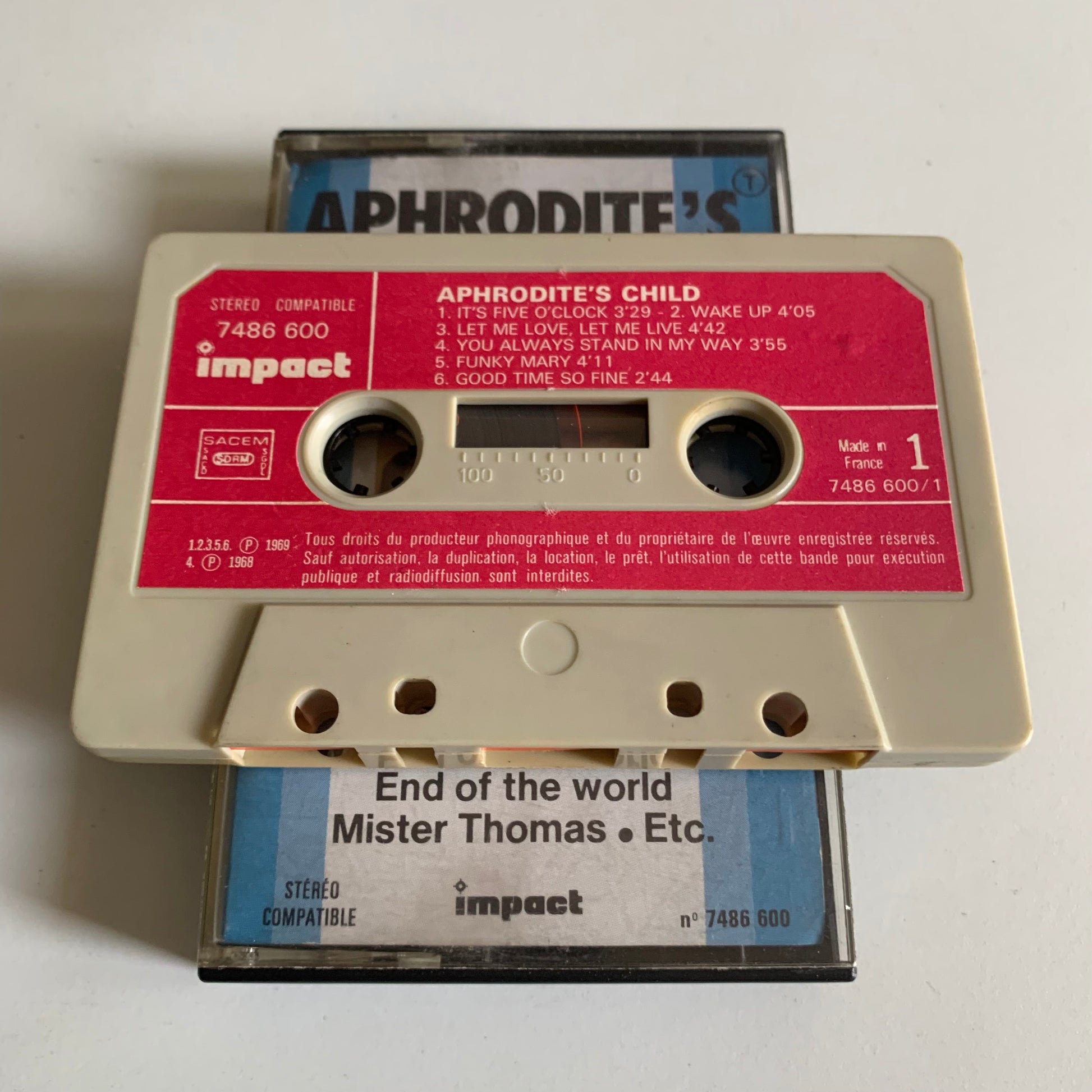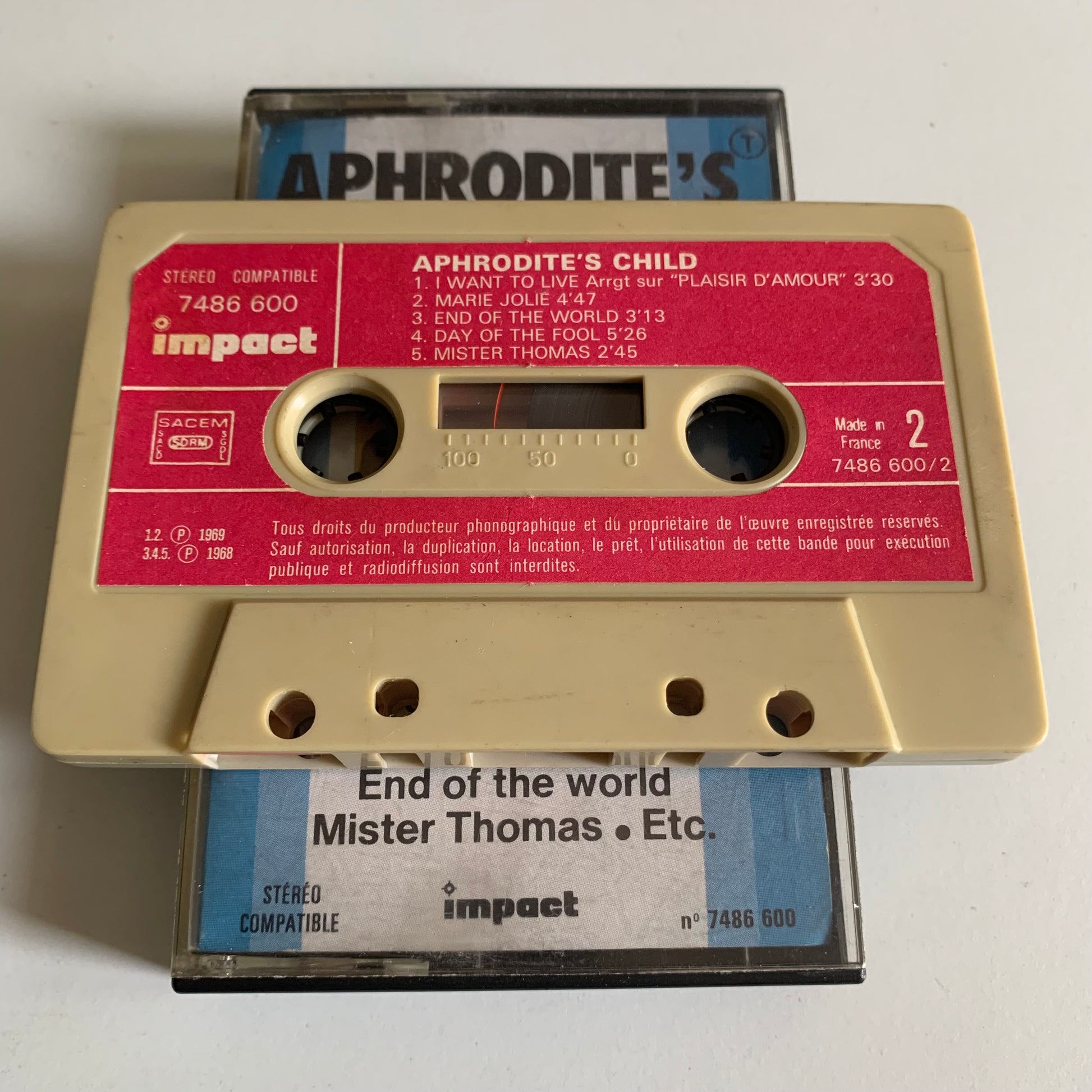 Profitez de la nostalgie avec cette cassette audio d'Aphrodite's Child, enregistrée en 1976. Plongez-vous dans le son intemporel de ce groupe légendaire et profitez de la qualité audio de cette cassette. Un ajout parfait à votre collection de musique rétro.