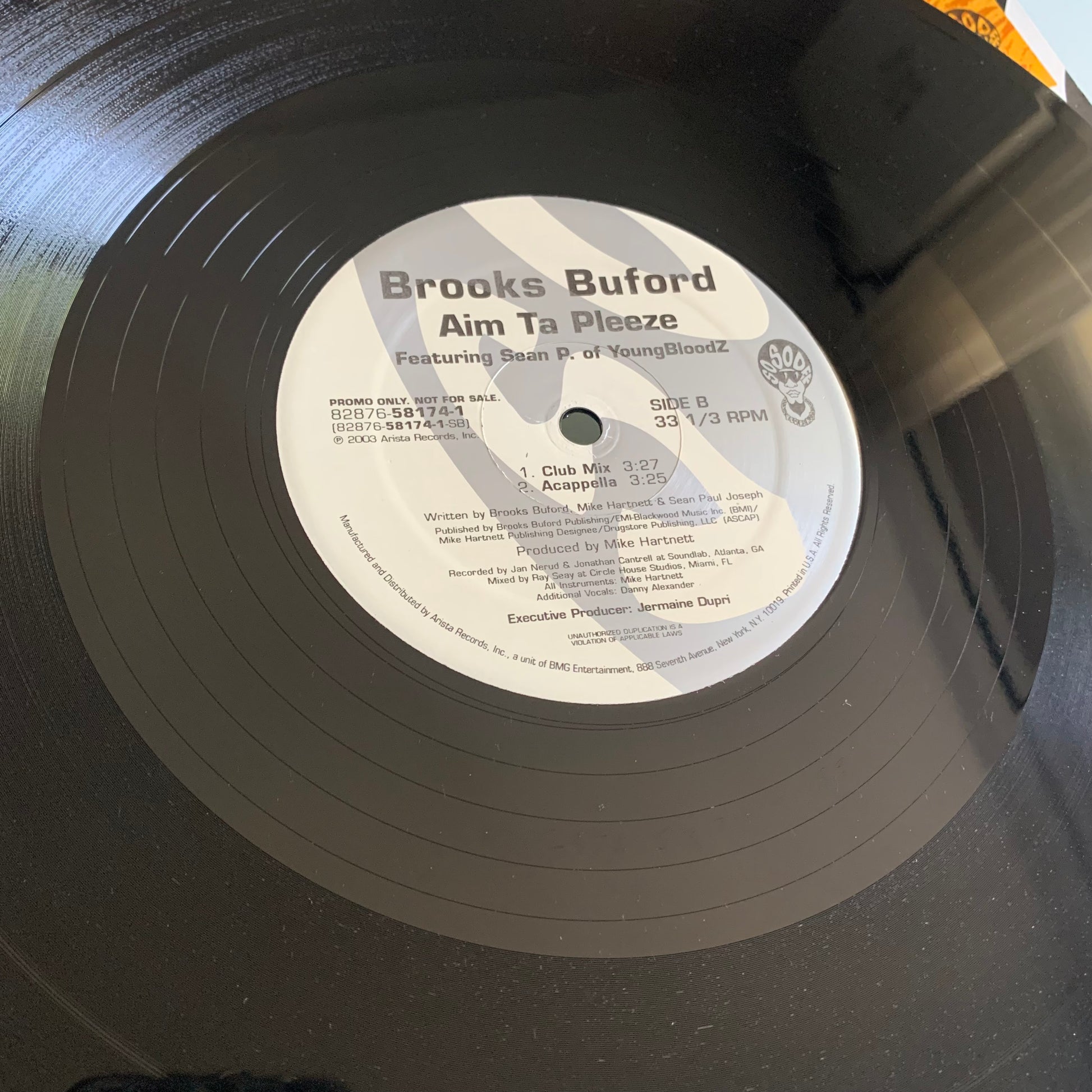 Découvrez le single promotionnel de 2003 "Aim Ta Pleeze" de Brooks Buford en vinyle. Profitez de la voix incroyable de Brooks et de son style unique pour mettre l'ambiance lors de vos occasions spéciales. Laissez-vous séduire par sa musique inédite et son talent incontesté.