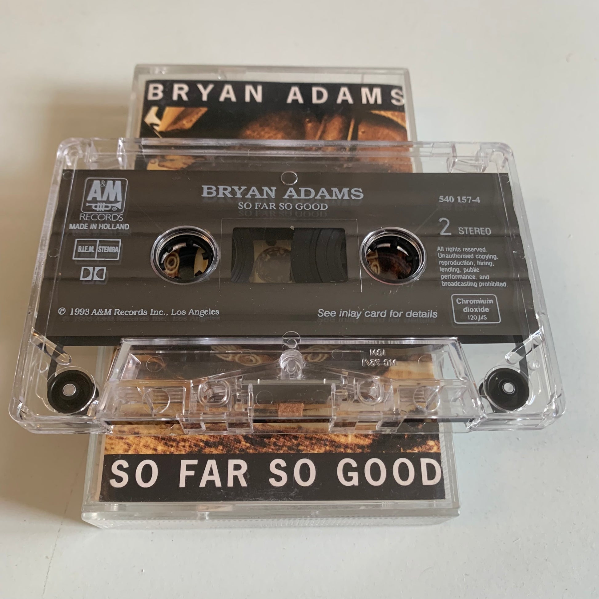 Profitez du meilleur de Bryan Adams avec "So Far So Good - 1993 Occasion". Cette cassette audio vous fera découvrir les tubes de l'artiste dans une qualité sonore remarquable de 1993. Idéal pour les fans de musique et les audiophiles.