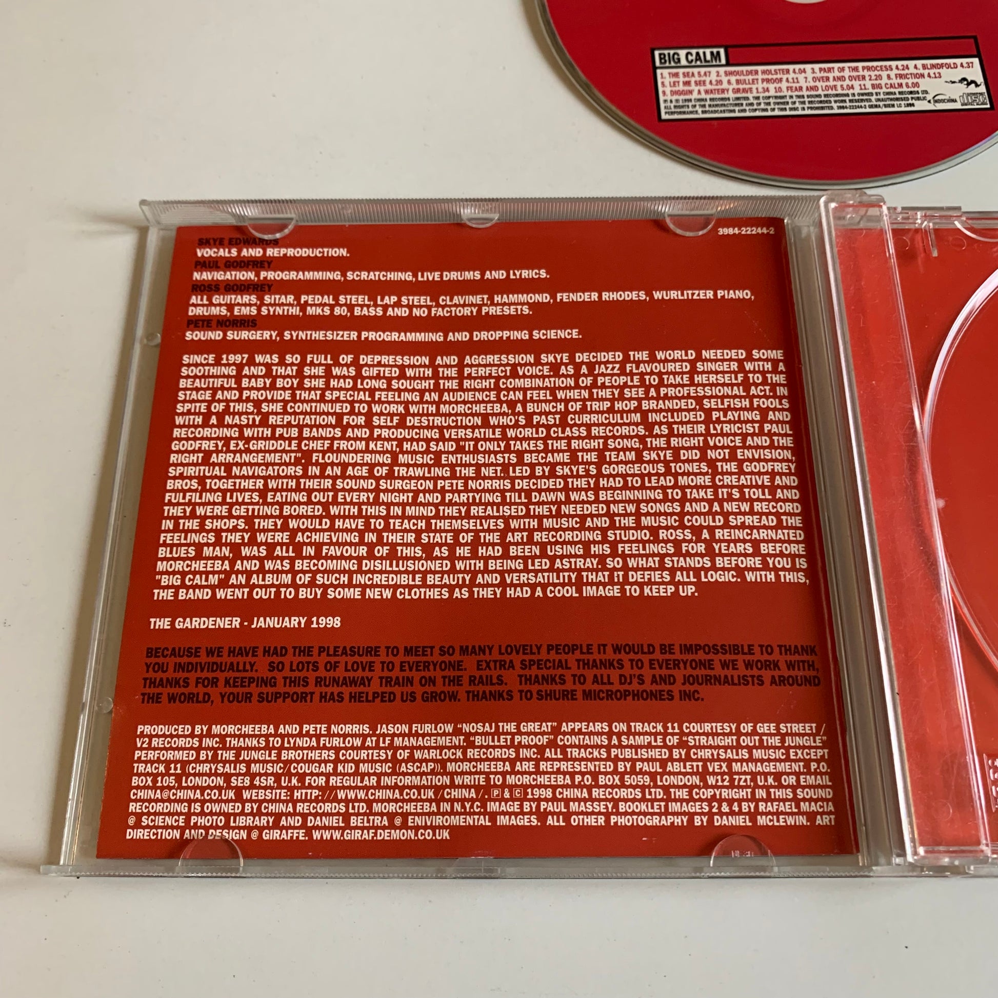 Avec le CD Morcheeba - Big Calm - 1998 Occasion, vous pourrez profiter de leur album acclamé par la critique, rempli de musique trip-hop et soulful. Avec des chansons comme "The Sea" et "Blindfold", cette collection intemporelle promet de combler vos sens avec leur son unique et captivant. N'hésitez plus et découvrez la beauté de la musique de Morcheeba.