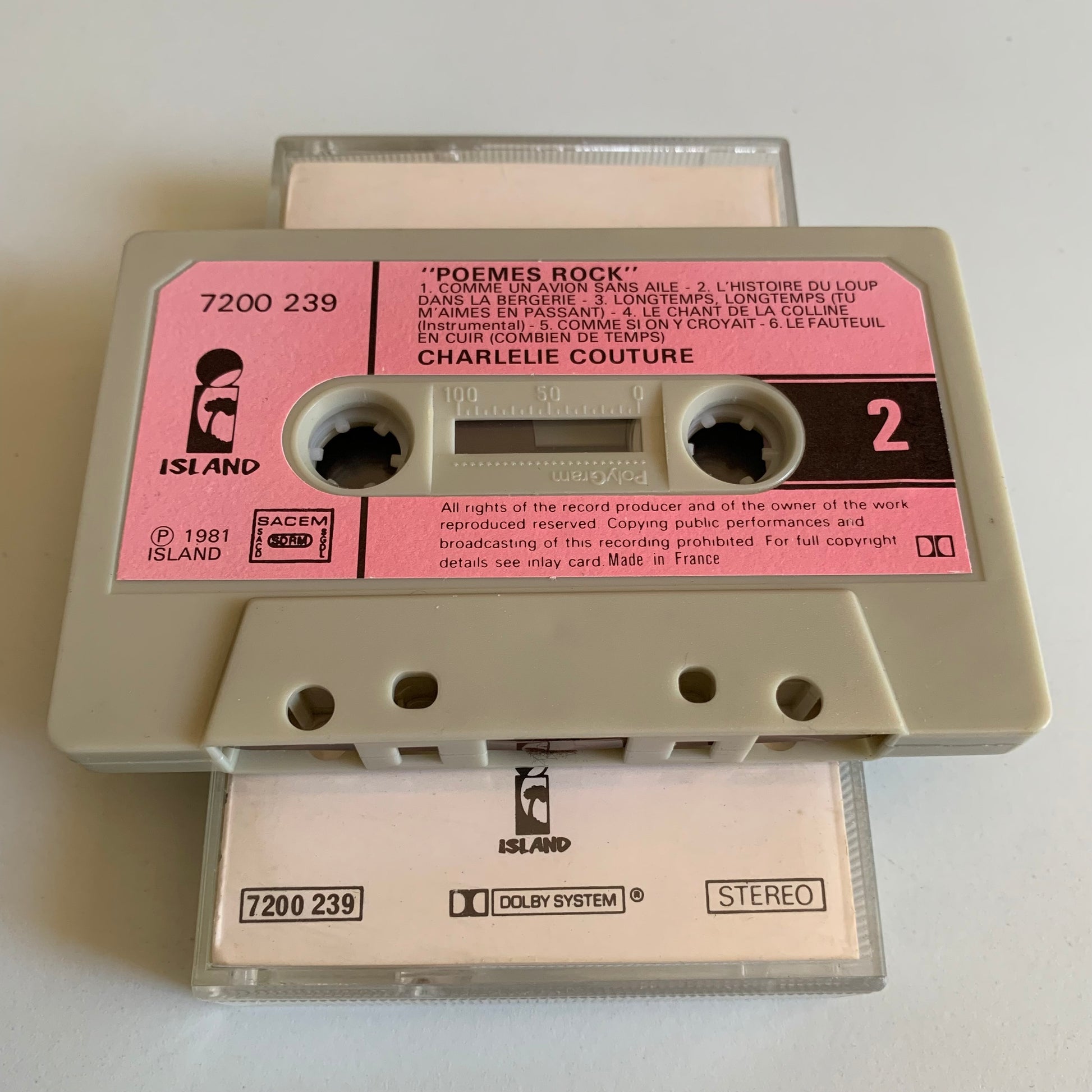 Cette cassette audio présente l'album "Poèmes Rock" de Charlélie Couture, sorti en 1981. Avec sa musique originale et ses textes poétiques, cet album offre un mélange unique de rock et de poésie. Écoutez-le et transportez-vous dans l'univers artistique de Charlélie Couture.
