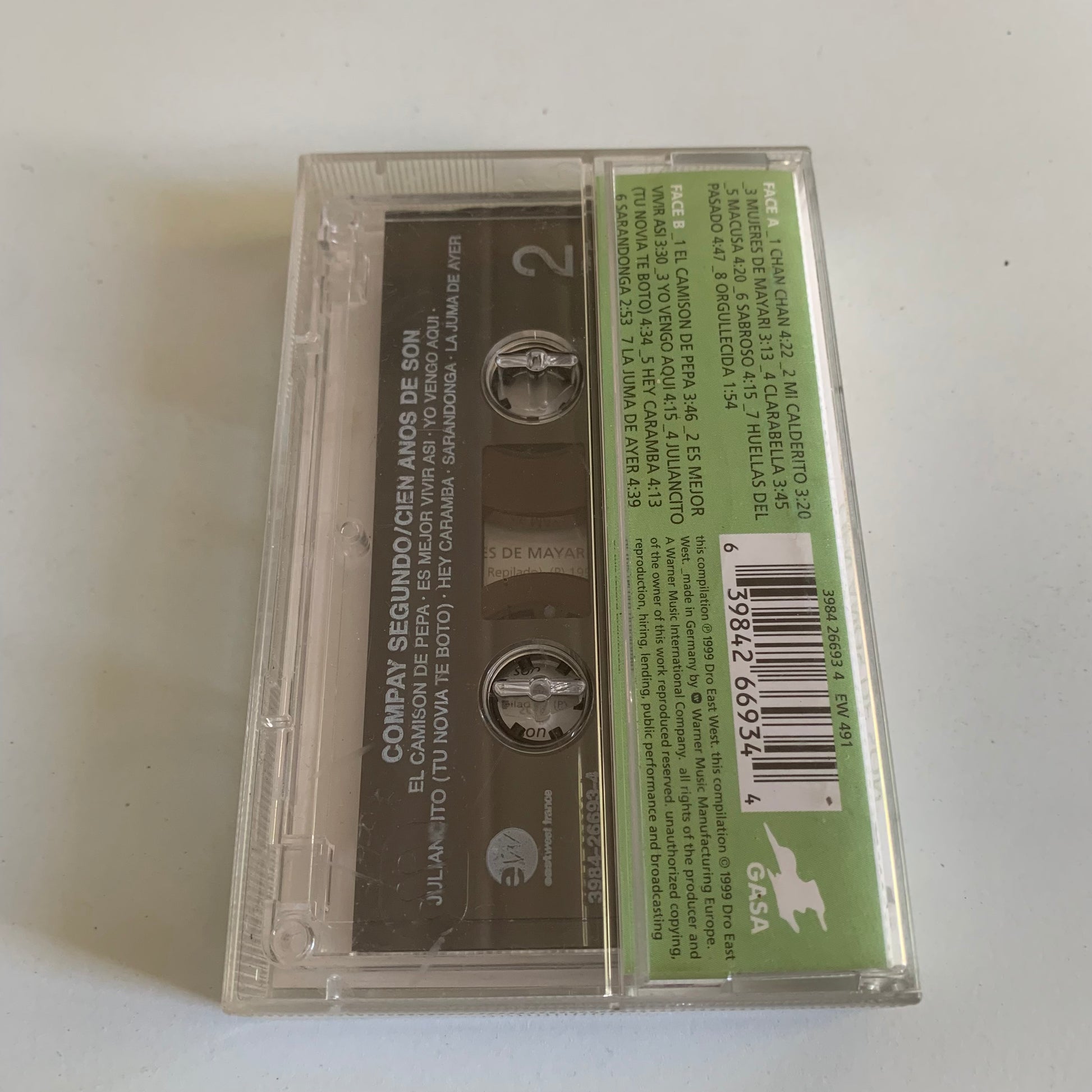 Ce cassette audio de Compay Segundo offre l'expérience authentique du Son cubain grâce à l'album "Cien Años De Son" sorti en 1999. Écoutez l'artiste légendaire chanter ses plus grands succès avec une qualité sonore élevée et profitez de cette occasion de découvrir ou redécouvrir sa musique intemporelle.