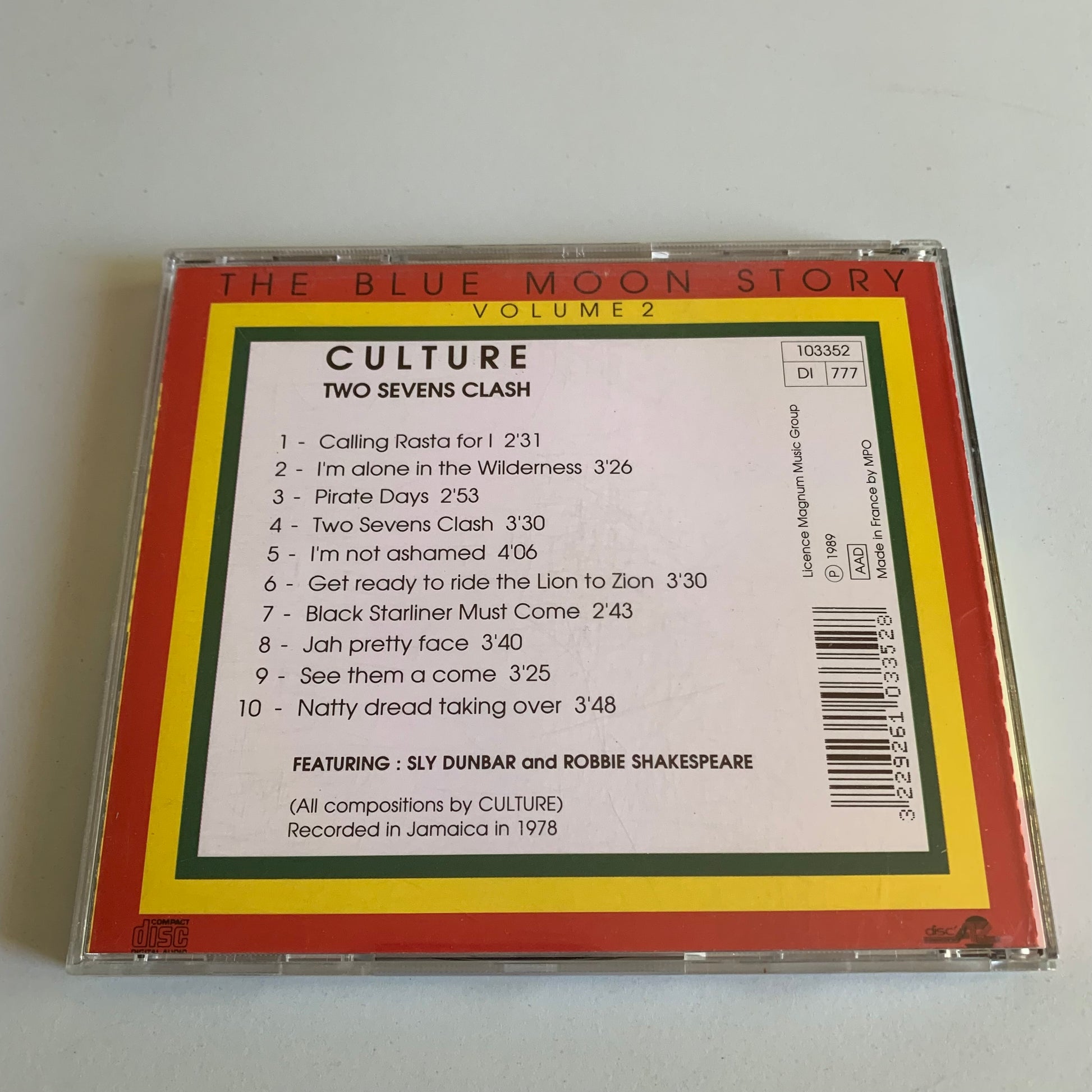 Profitez des vibrations du reggae avec le CD Culture-Two Sevens Clash-1989 Occasion. Ce produit comprend les hits "I'm Not Ashamed" et "Jah Pretty Face". 100% d'authenticité avec un son unique.