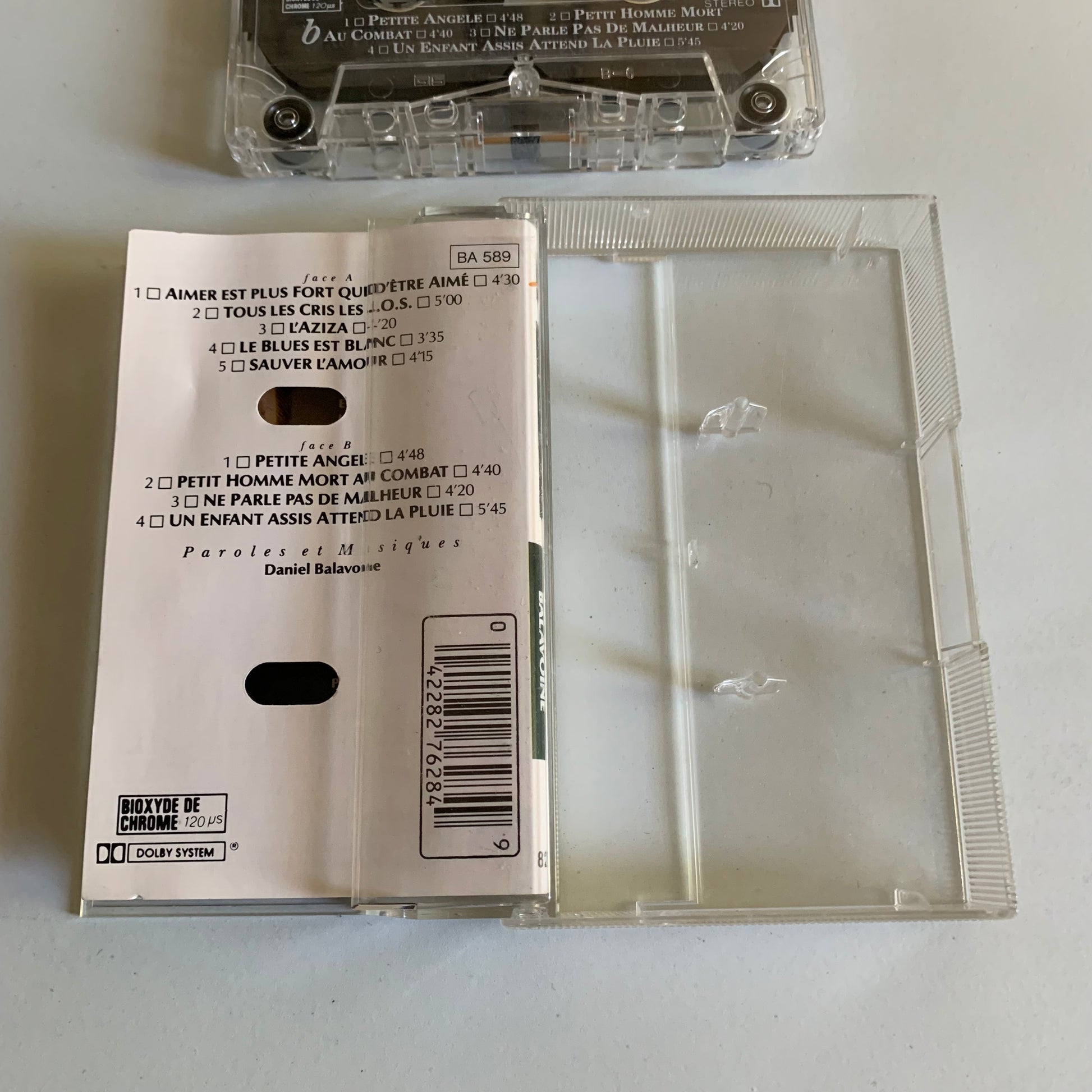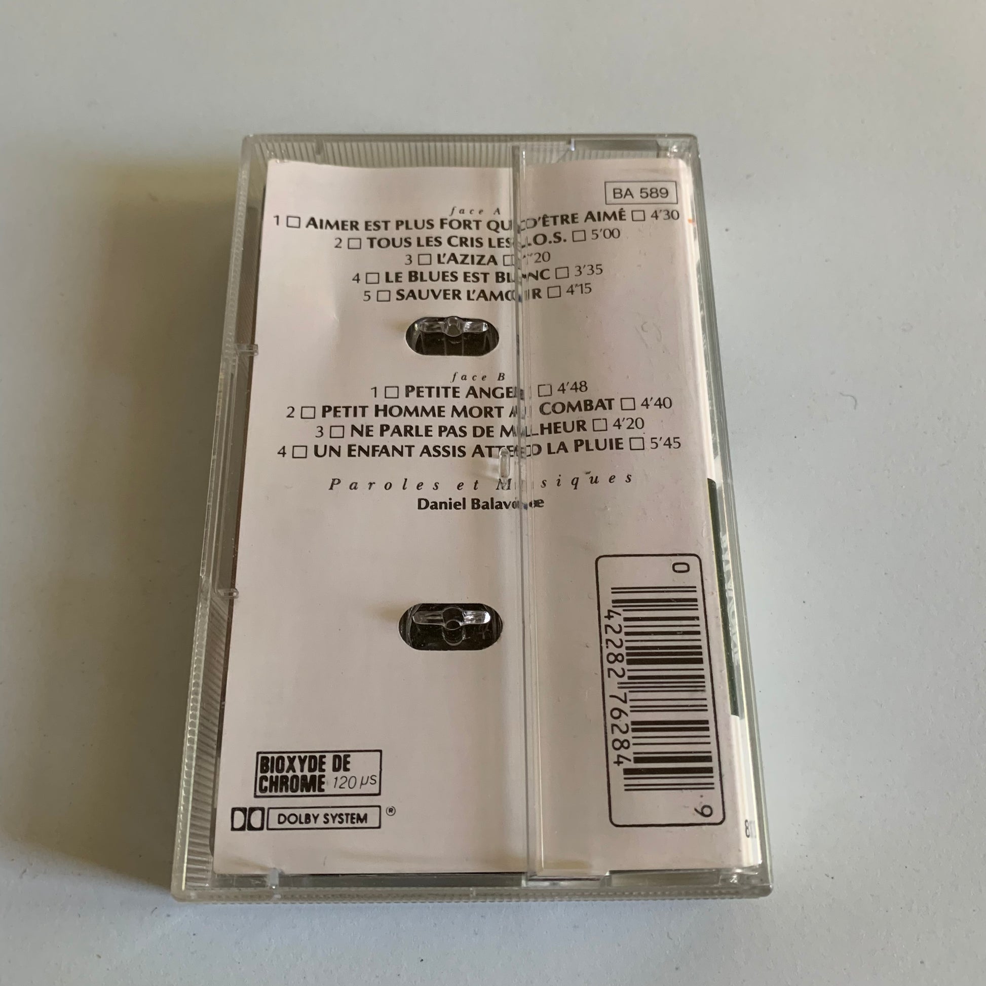 Profitez de cette cassette audio rare pour redécouvrir la voix inoubliable de Daniel Balavoine dans son album emblématique "Sauver L'Amour". Enregistré en 1985, cet objet de collection est une véritable occasion pour les fans de l'artiste et les amateurs de musique française.
