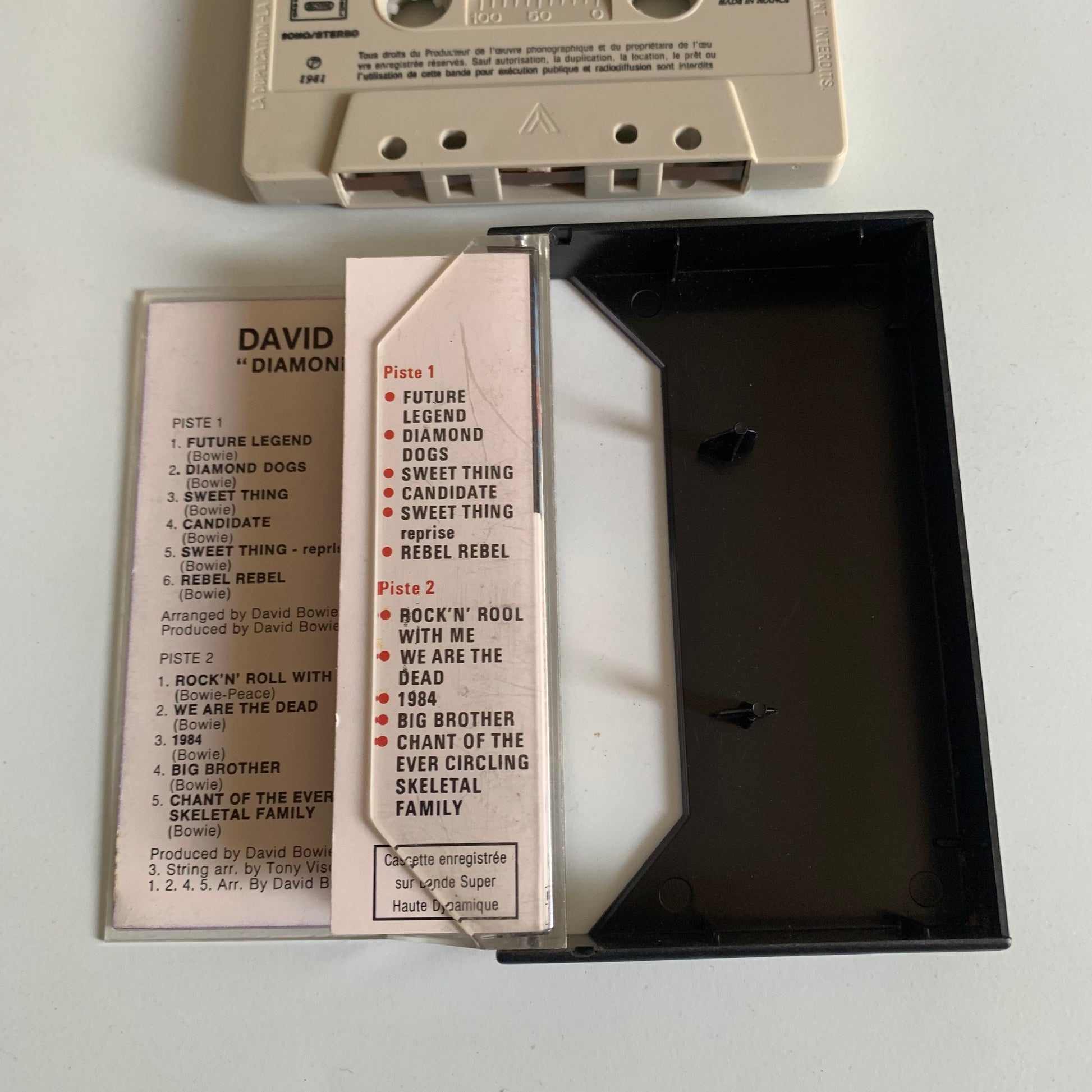 "Profitez de la musique de David Bowie avec le cassette audio Diamond Dogs de l'année 1981. Ce chef-d'œuvre du rock vous transporte à travers les années avec sa qualité sonore exceptionnelle et ses performances légendaires. Ajoutez-le à votre collection de musique pour une expérience auditive inoubliable."