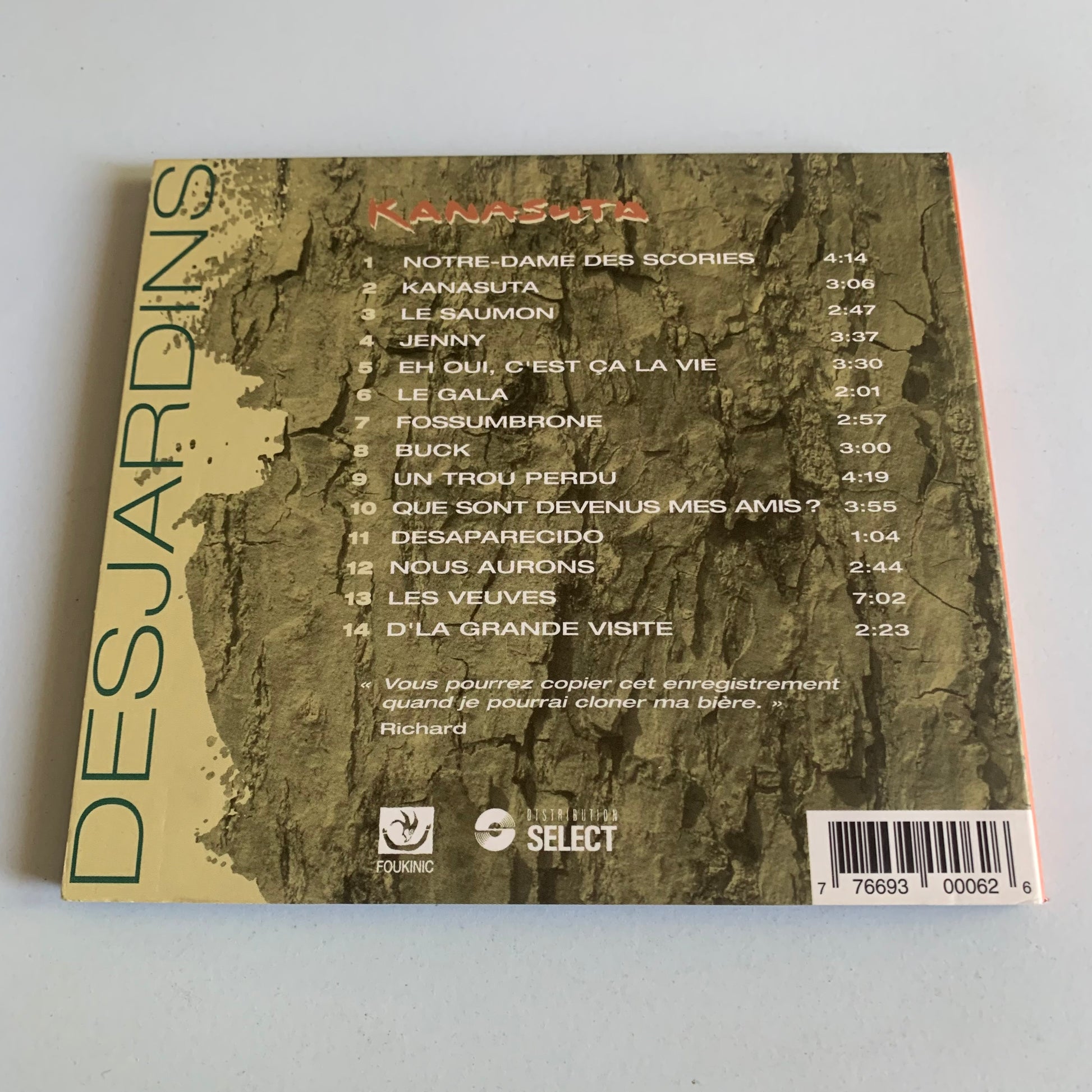 Ce CD est un album occasion de Desjardins - Kanasuta - 2003. Profitez de la musique de ces artistes, avec cet album, vous aurez accès à des chansons uniques et intemporelles qui vous feront découvrir l'univers musical de Desjardins et Kanasuta.