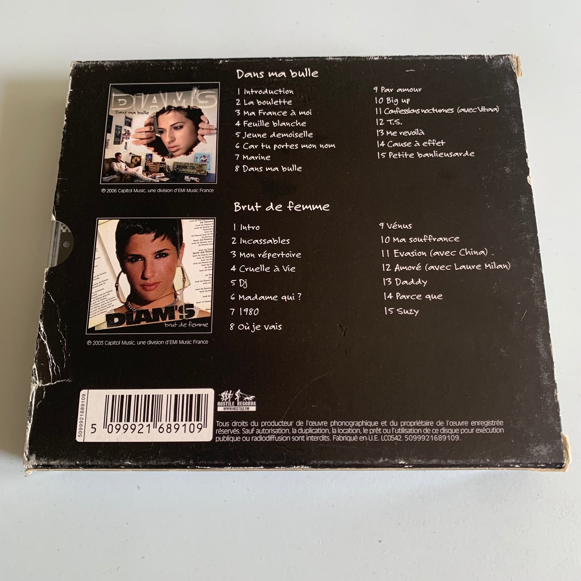 Ce double CD coffret est idéal pour les fans de Diam's. Avec les albums "Brut De Femme" et "Dans Ma Bulle", plongez dans l'univers unique de cette artiste française. Deux fois plus de tubes pour un plaisir musical prolongé. Ne manquez pas cette occasion de découvrir ou redécouvrir le talent de Diam's.