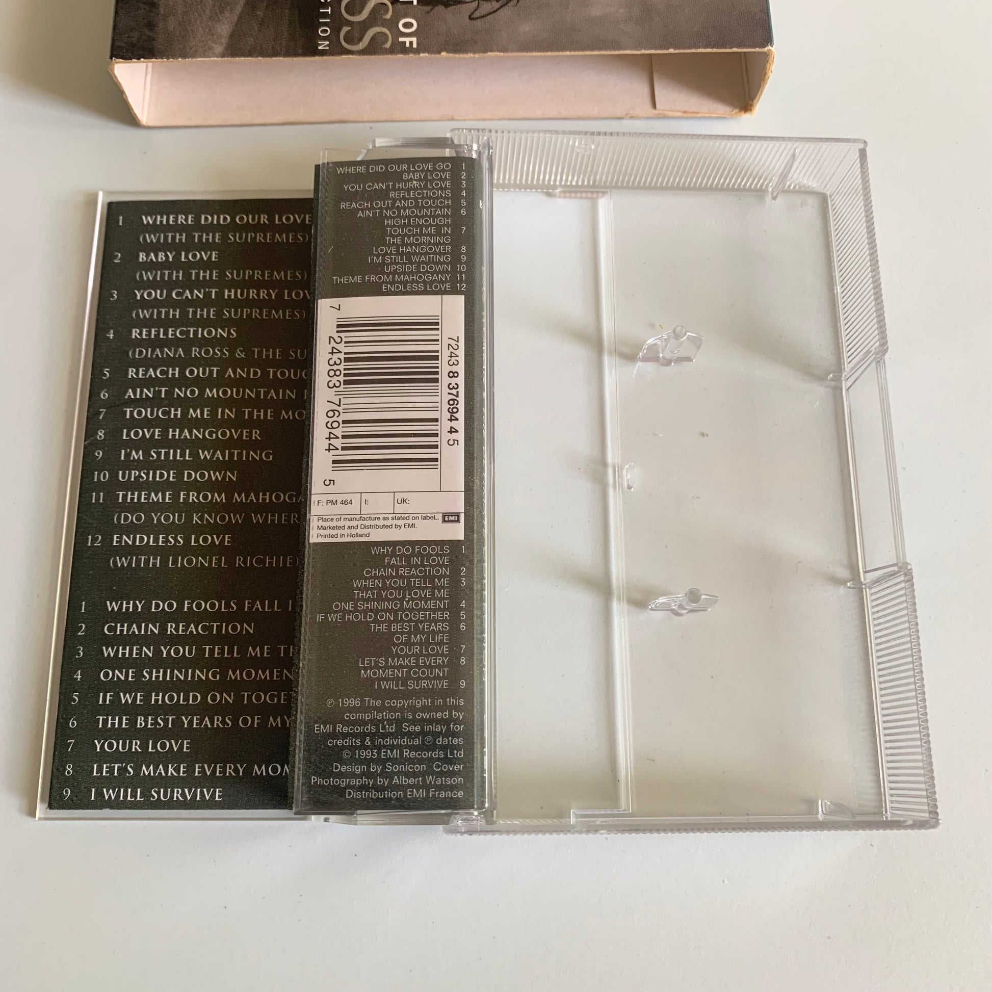 Cette cassette audio présente les meilleures chansons de Diana Ross dans sa collection ultime "One Woman". Avec des performances captivantes et émouvantes, plongez dans l'univers musical de cette icône de la musique soul des années 1996. Une occasion unique de découvrir ou redécouvrir les talents intemporels de Diana Ross.