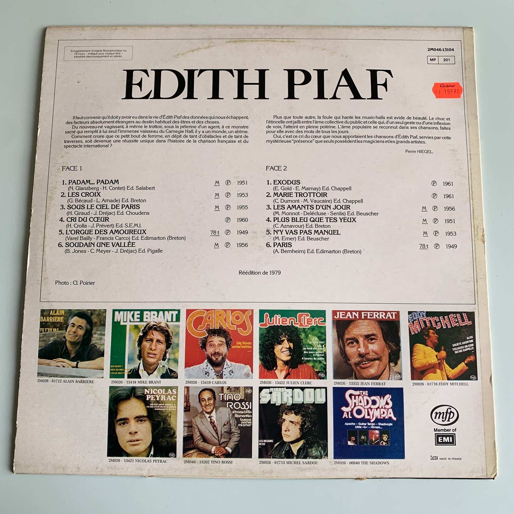 Sorti en 1979, ce vinyle est l'occasion idéale pour revivre les classiques de la célèbre chanteuse française Edith Piaf avec son album "Un Souvenir". Retrouvez des chansons intemporelles telles que "Padam... Padam" et redécouvrez tout le talent et l'émotion de l'artiste à travers ce pressage en 33 tours.
