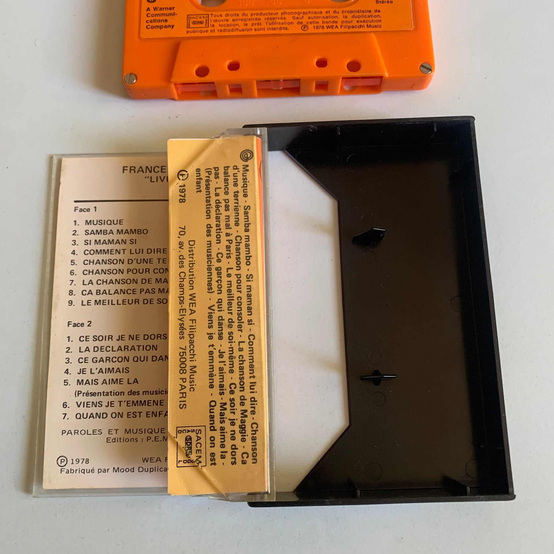 Profitez de la voix dynamique et des performances énergiques de France Gall en direct en 1978 avec cette cassette audio. La qualité de la couleur du son vous plonge dans l'atmosphère du concert, pour une expérience immersive. Disponible en édition limitée, cette cassette est un collector pour les fans de France Gall.