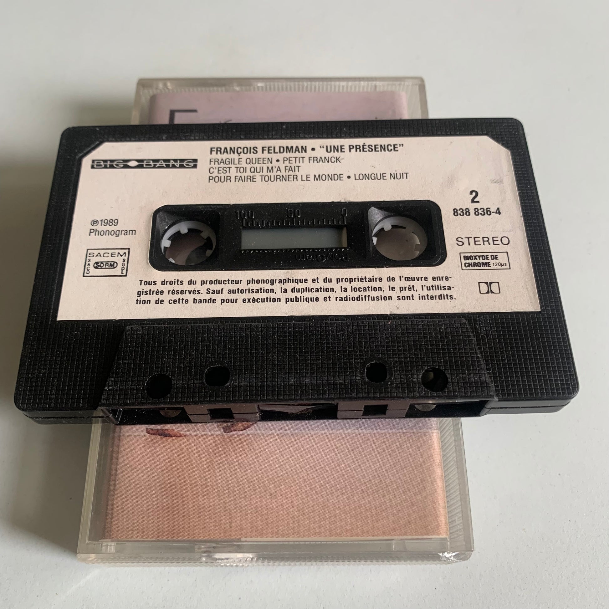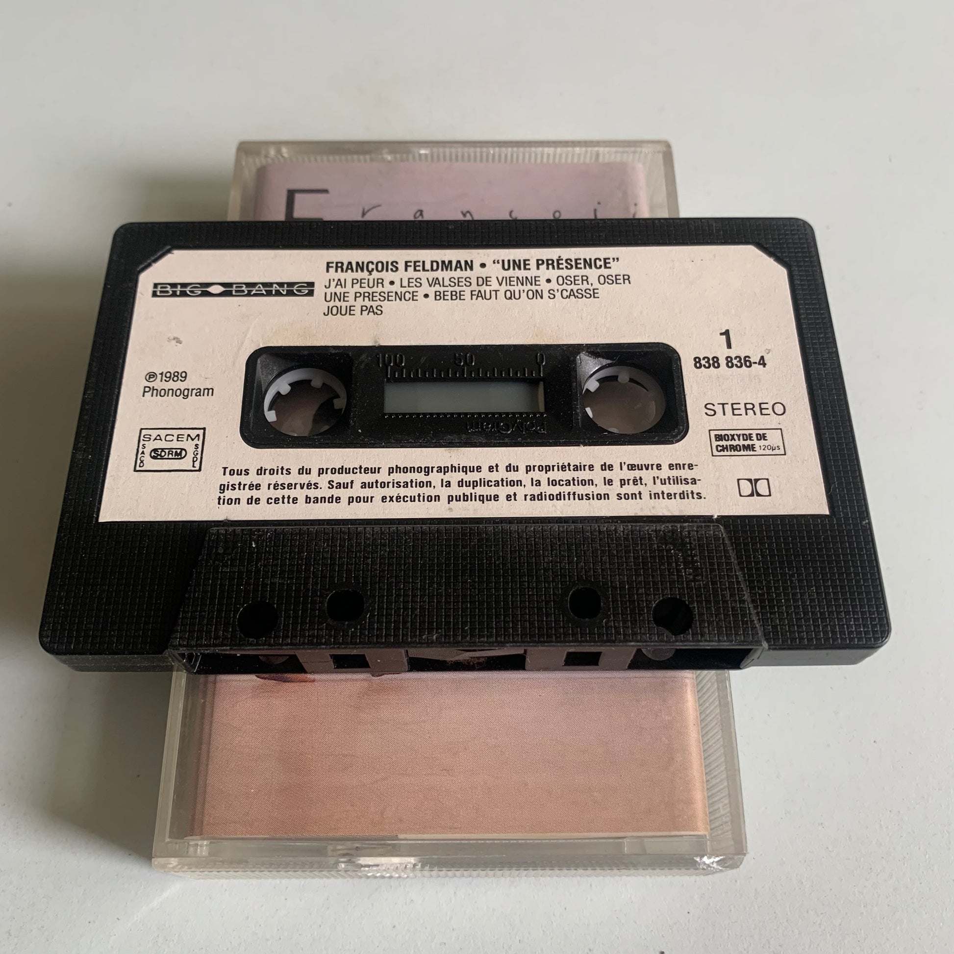Profitez de l'album de 1989, "Une Présence", du célèbre chanteur français François Feldman avec cette cassette audio d'occasion. Laissez-vous séduire par sa voix captivante et ses paroles intemporelles. Un ajout parfait à votre collection de musique.