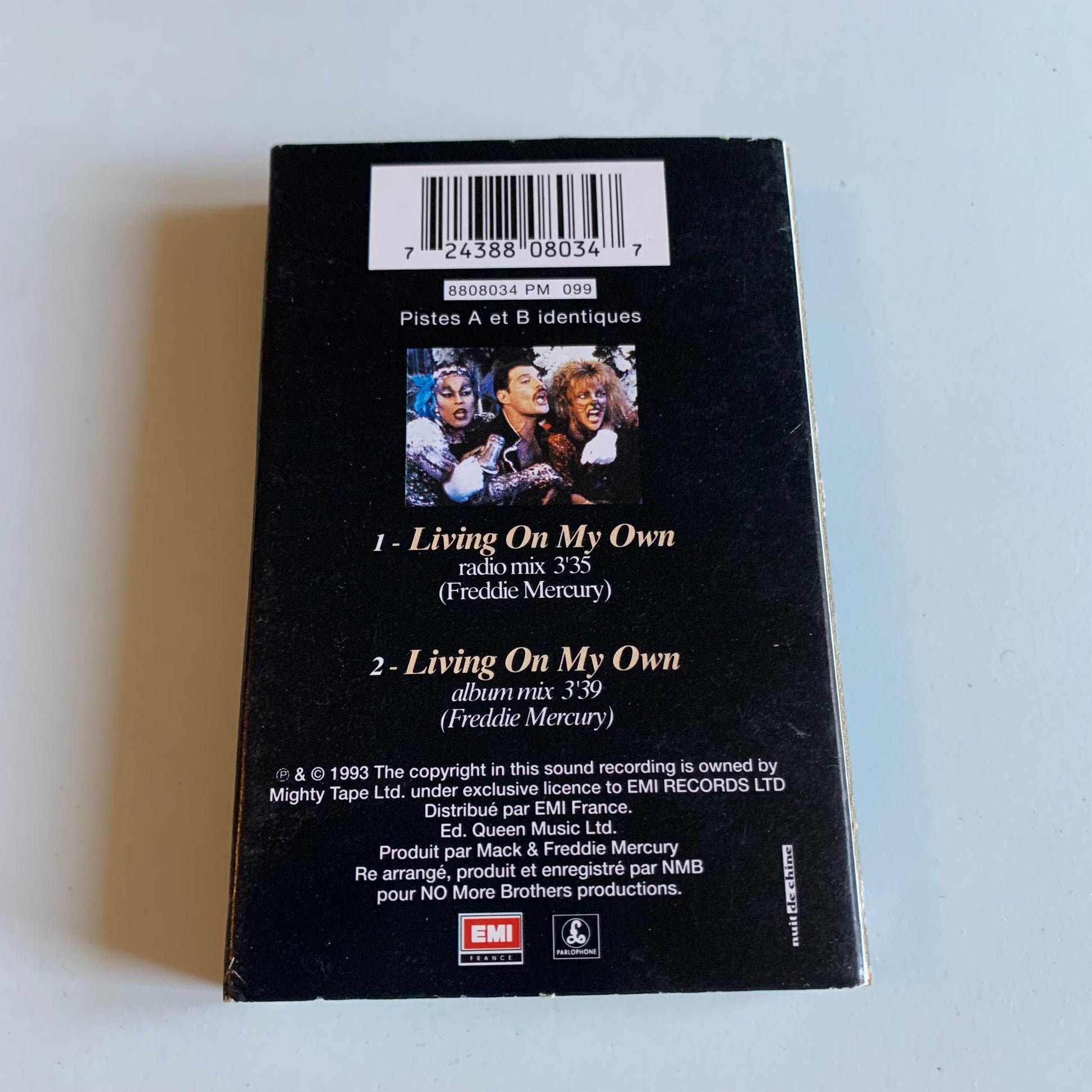 Découvrez le hit single Freddie Mercury - Living On My Own de 1993 dans le format cassette audio. Profitez de la voix unique du légendaire Freddie Mercury, chanteur emblématique de Queen, pour revivre ce morceau culte dans sa forme originale. Un incontournable pour tous les fans de musique.
