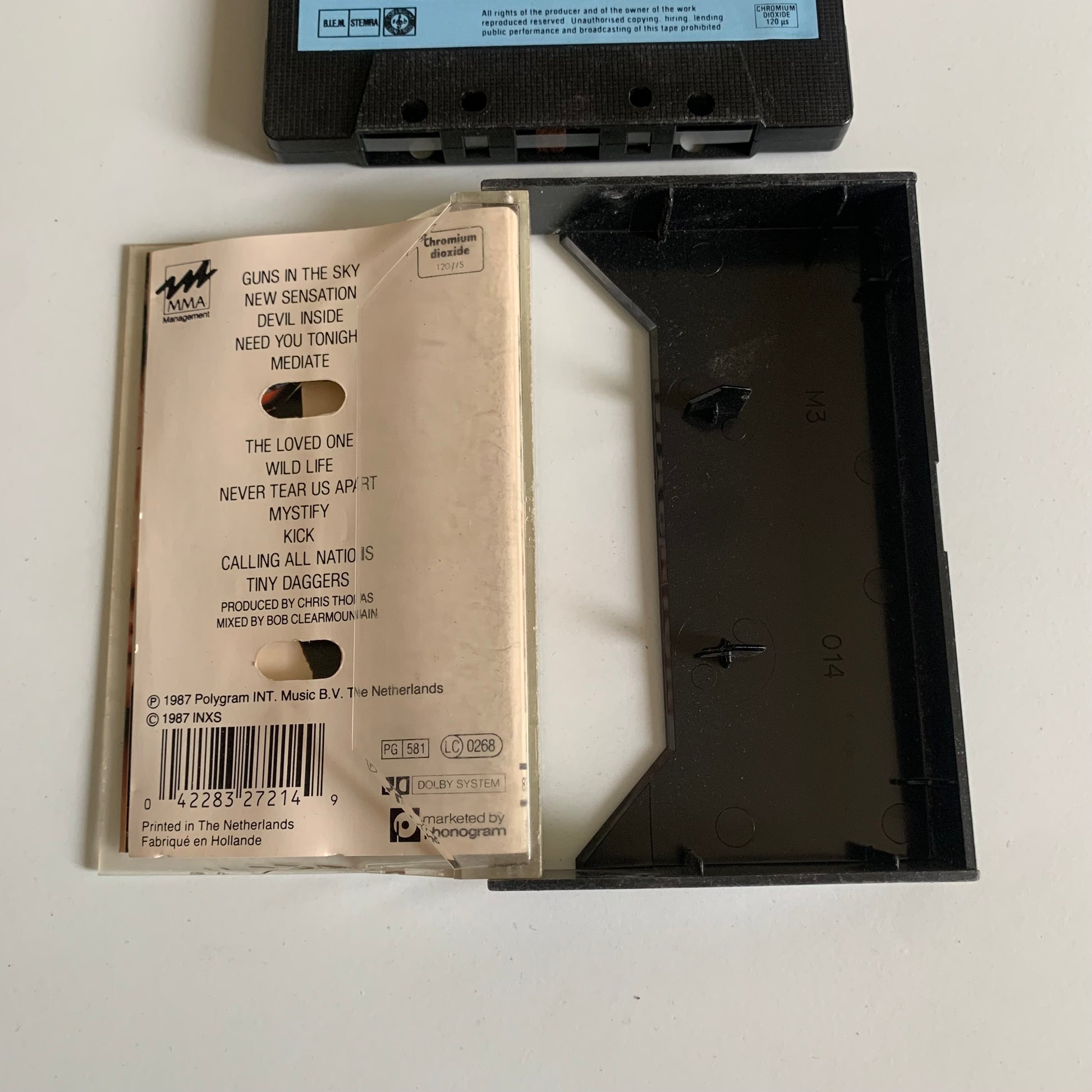 "Cassette audio de l'album Kick de INXS sorti en 1987. Profitez de classiques du rock tel que "Need You Tonight" et "Never Tear Us Apart" avec cet album iconique."