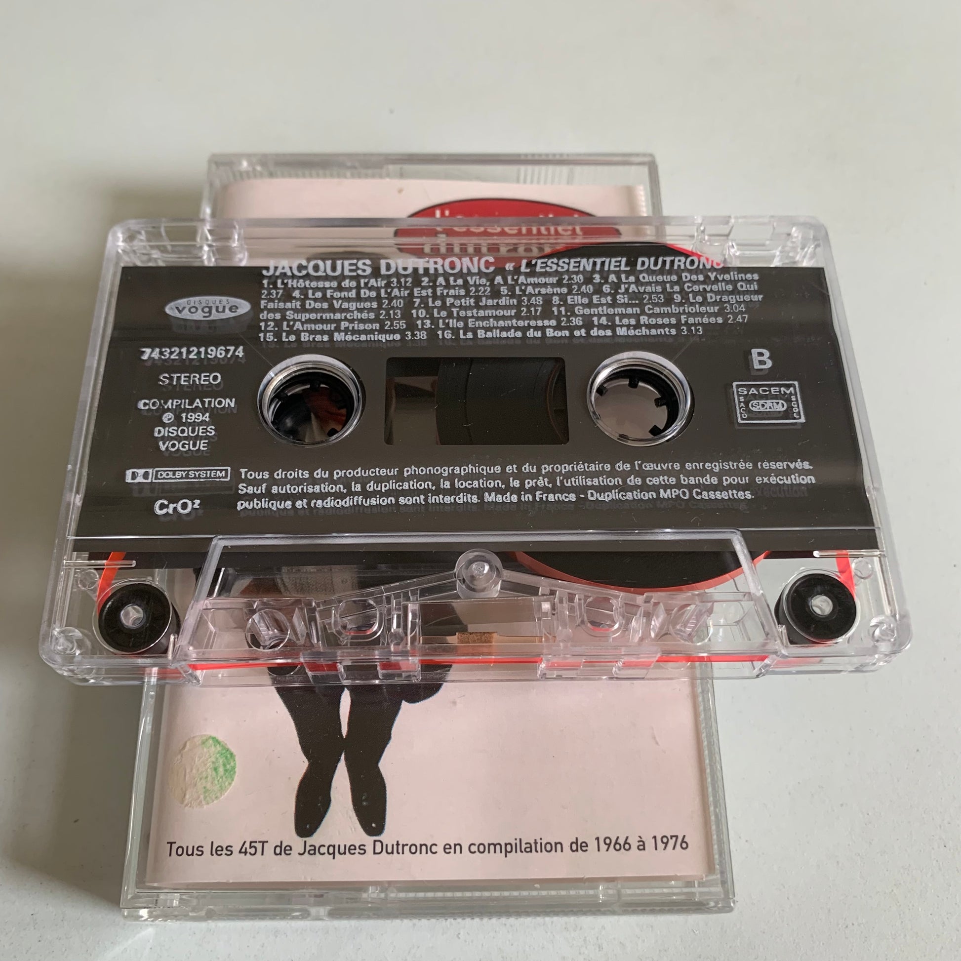 Découvrez Jacques Dutronc - L'Essentiel Dutronc - 1994 sur cassette audio. Une façon nostalgique d'écouter les plus grands succès de Jacques Dutronc. Une collection incontournable pour les fans de cet artiste emblématique des années 1990.