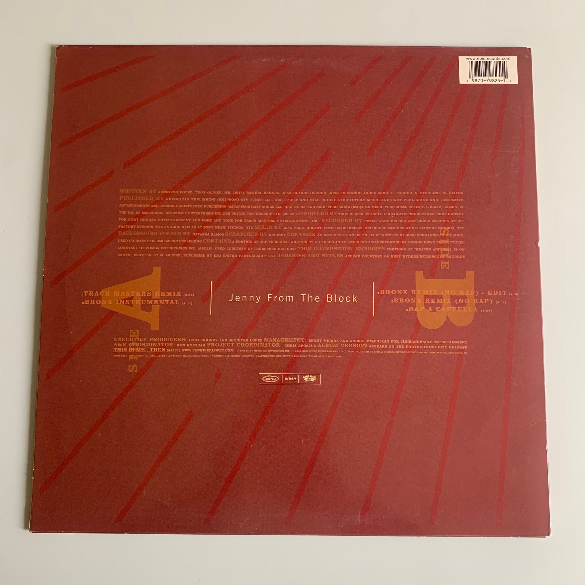 Découvrez le vinyle "Jenny From The Block" de Jennifer Lopez de l'année 2002. Profitez de cette édition unique pour écouter cet hymne culte de la musique pop. Une qualité sonore exceptionnelle pour une expérience d'écoute inoubliable. Un must-have pour tous les fans de J.Lo.