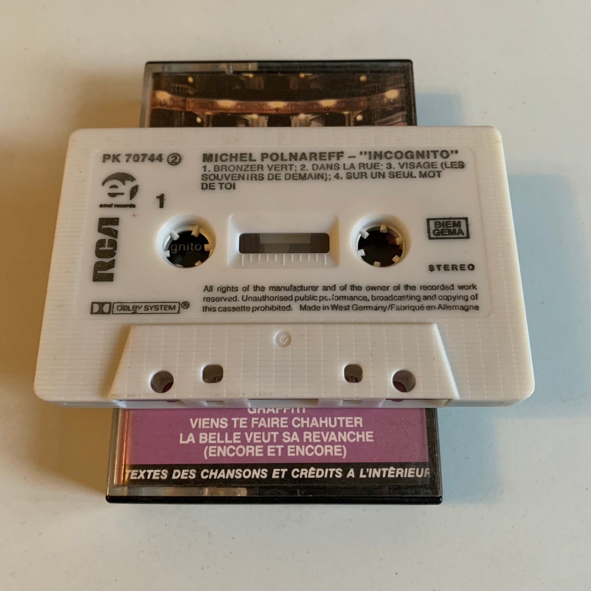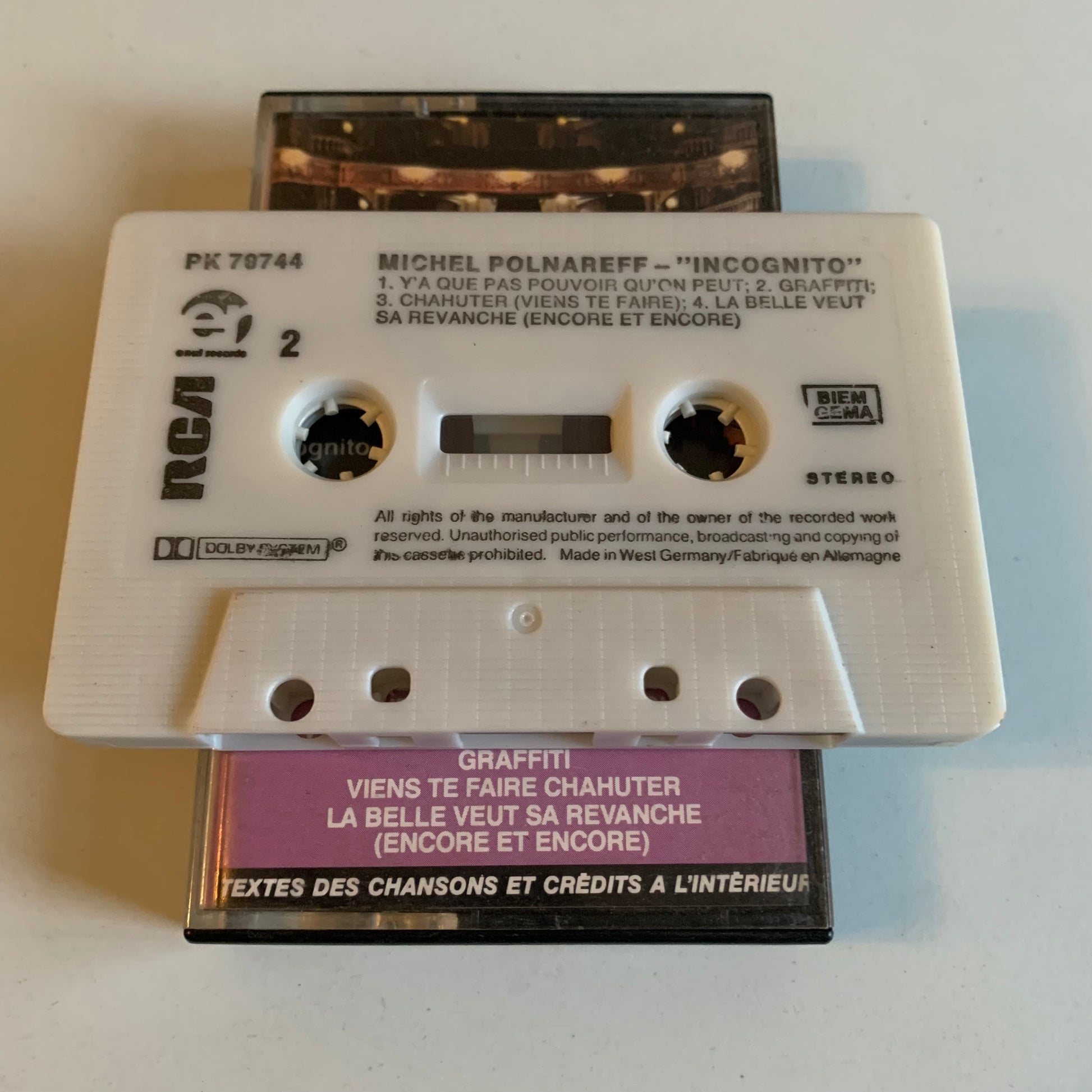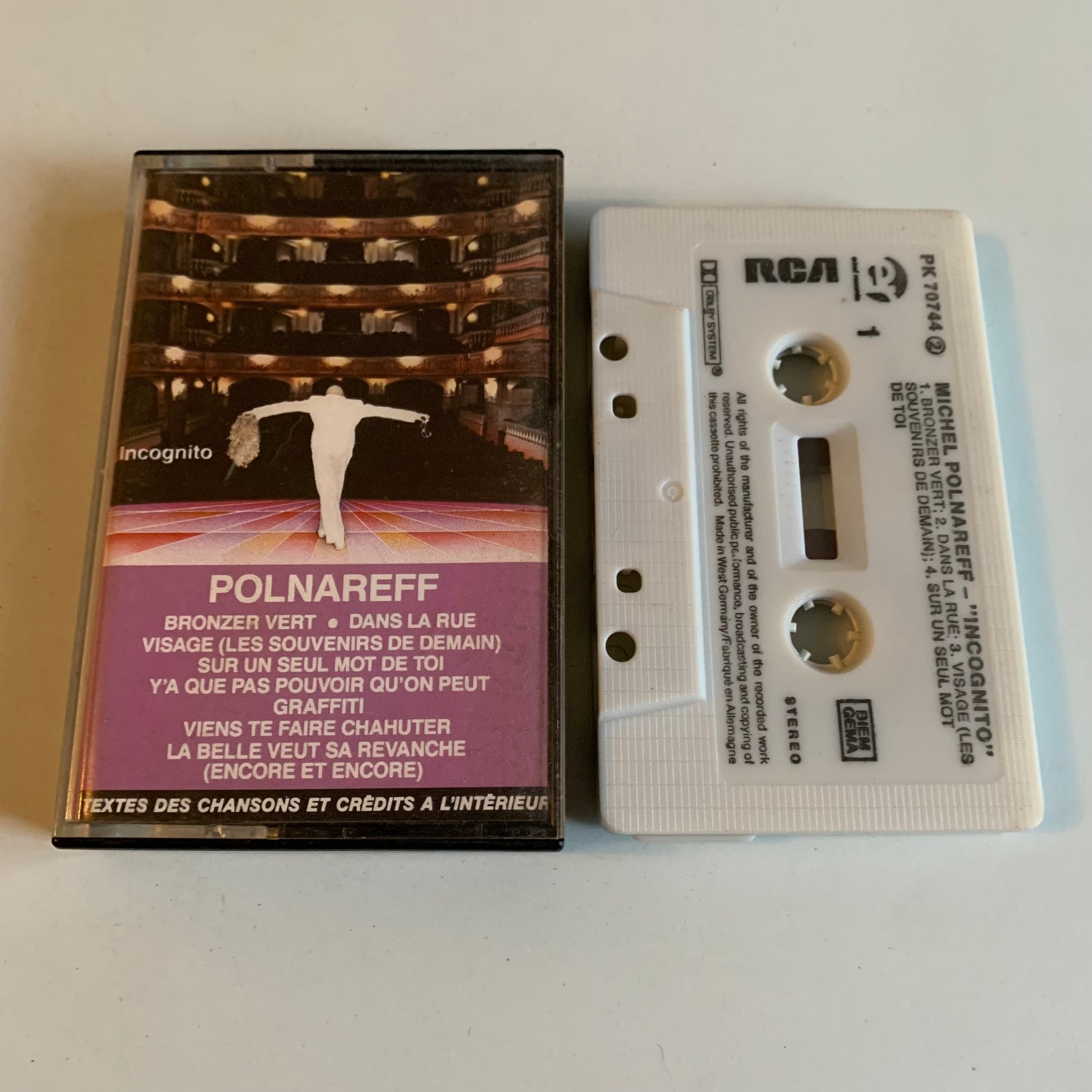 Profitez du son analogique de haute qualité avec la cassette audio de Michel Polnareff - Incognito - 1985 en occasion. Plongez-vous dans la musique intemporelle de l'artiste français et découvrez la richesse de son talent à travers cet album. Ne manquez pas cette opportunité de ressentir toute l'émotion de la musique de Polnareff enregistrée en 1985.