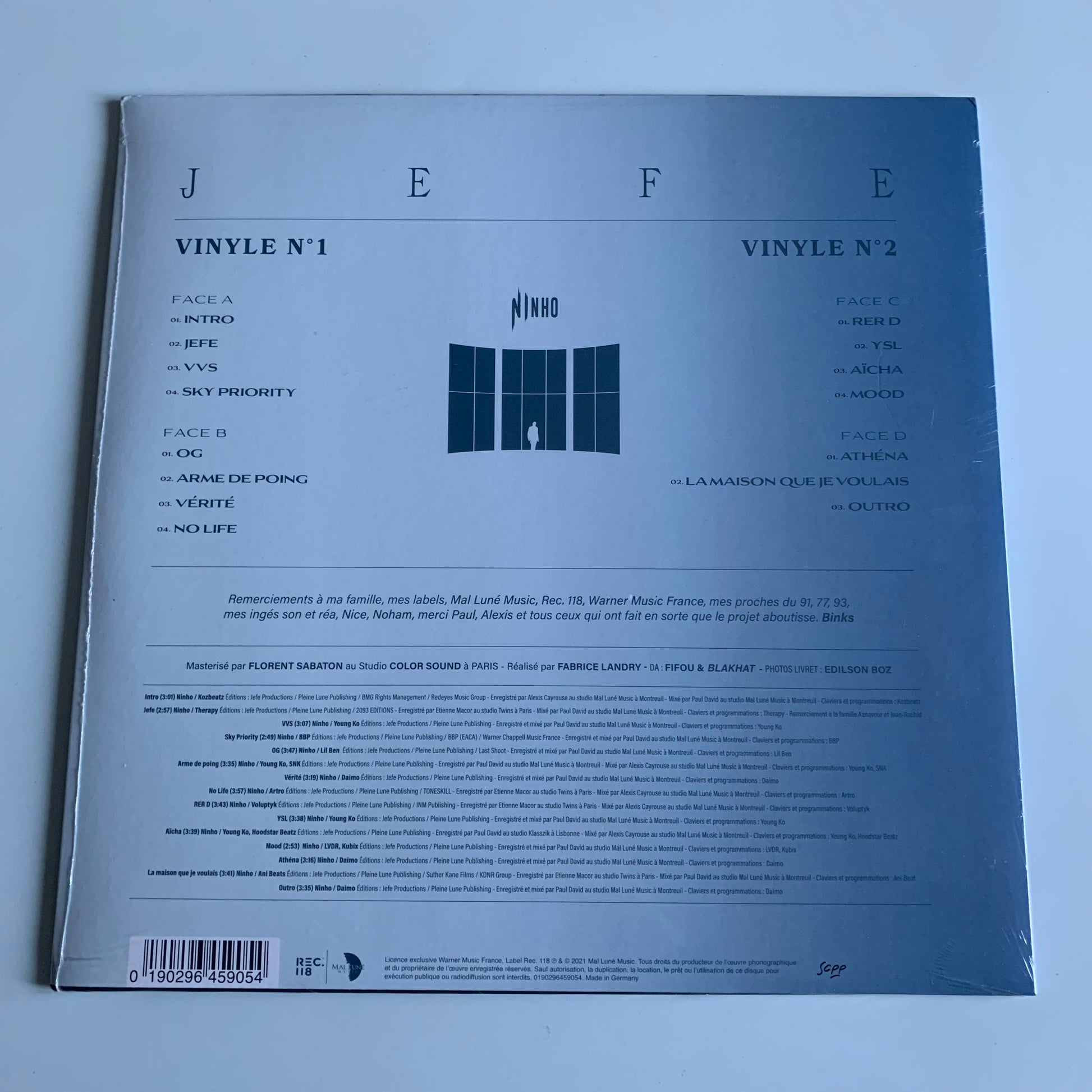 Ce vinyle de Ninho - Jefe - Double LP 2021 est neuf et encore sous blister. Profitez de la qualité sonore du vinyle tout en écoutant les derniers sons de Ninho. Avec un double LP, vous aurez assez de musique pour des heures de plaisir auditif. Ne manquez pas l'occasion de mettre à jour votre collection de musique avec ce vinyle.