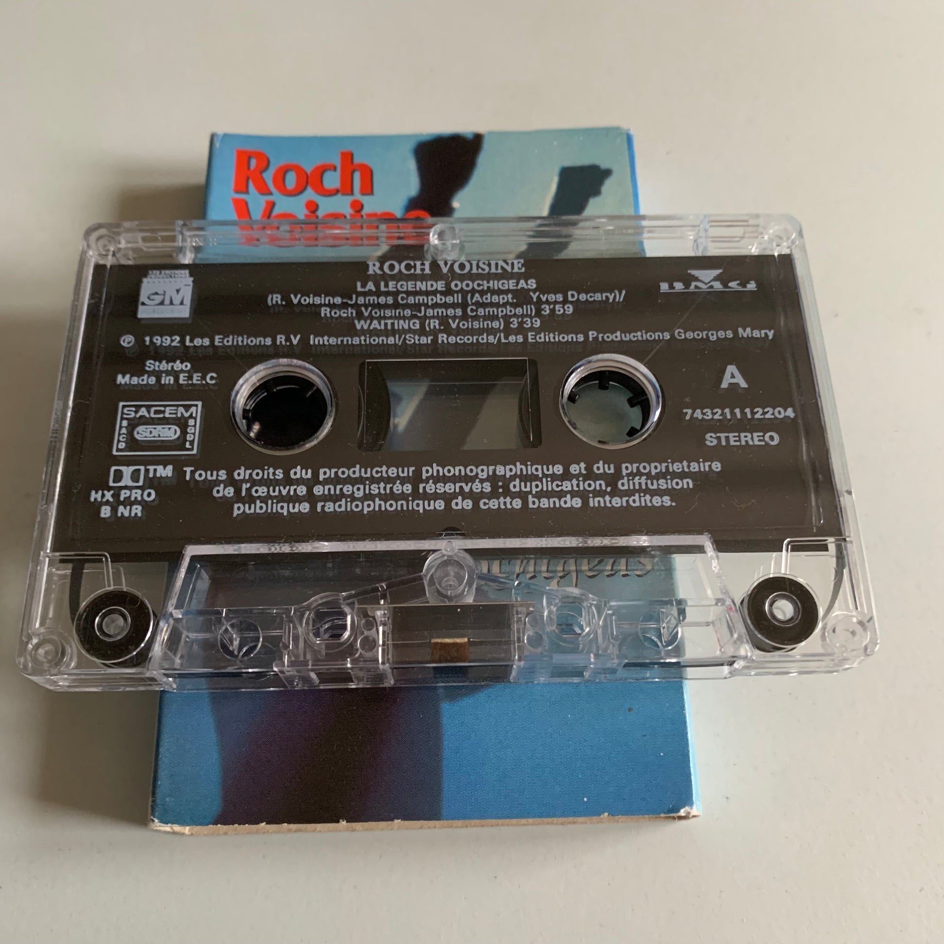 Profitez de la musique de Roch Voisine avec cette cassette audio vintage de l'album "La Légende Oochigeas" sorti en 1993. Cette cassette unique contient le single "Oochigeas" ainsi que d'autres tubes de l'artiste. Ajoutez-la à votre collection de musique pour découvrir les talents de Roch Voisine en français.