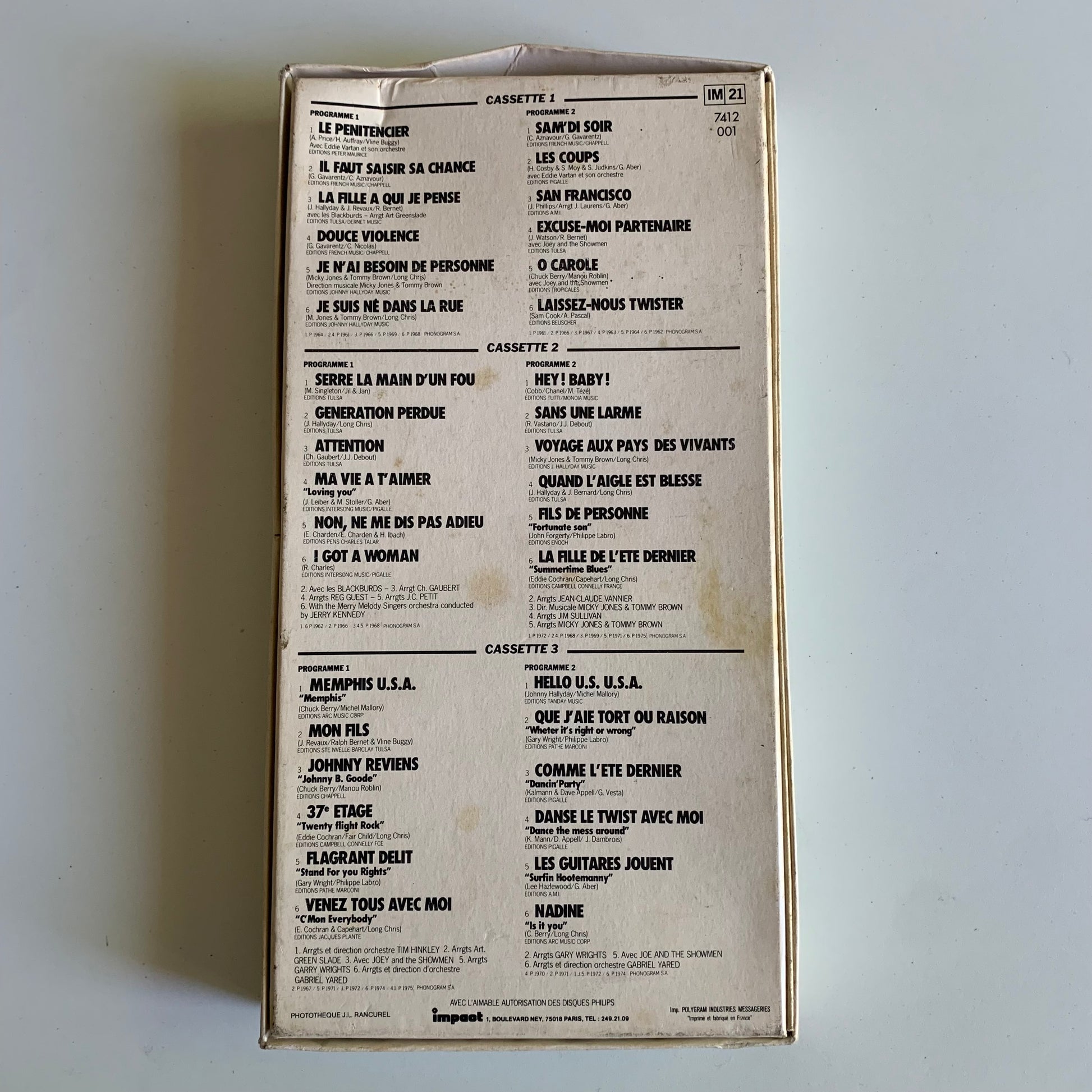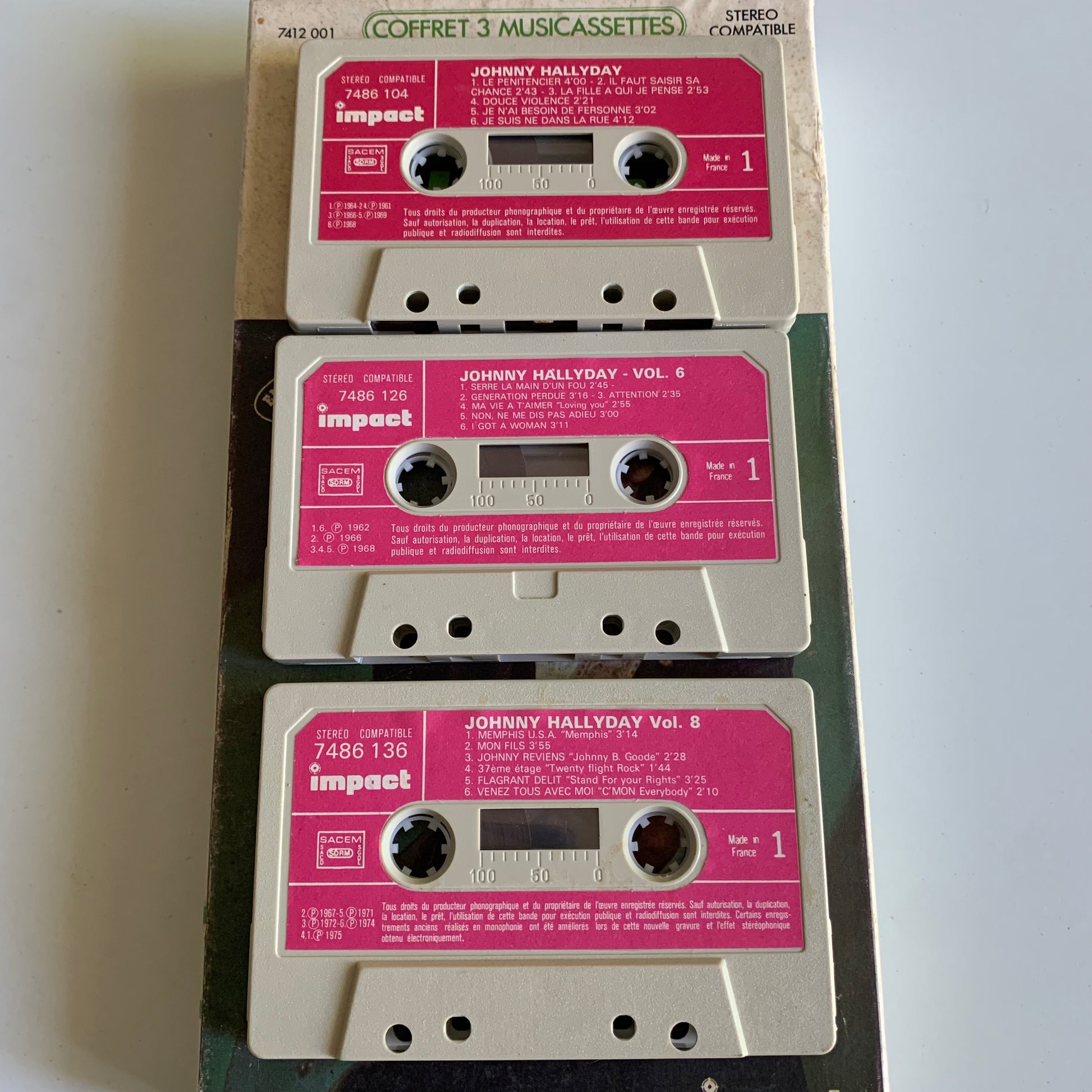 Ce coffret box set occasion comprend 3 cassettes audio de Johnny Hallyday pour un plaisir auditif complet. Découvrez ou redécouvrez les grands succès de cette icône de la musique française, avec une qualité audio exceptionnelle. Un must-have pour tout fan de Johnny Hallyday ou amateur de musique française.