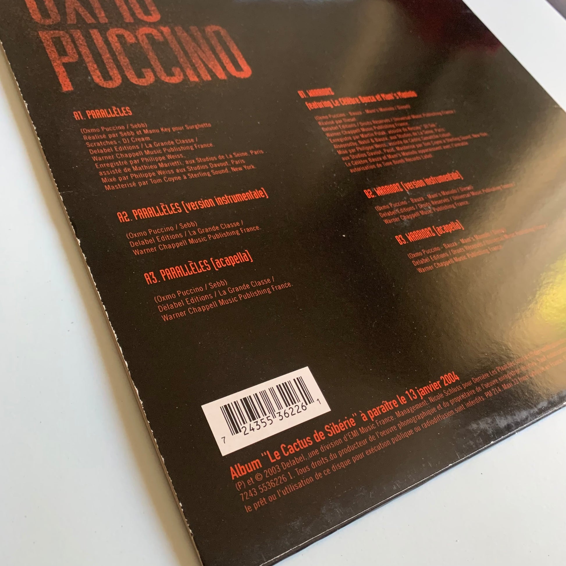 Profitez de l'essence pure de Oxmo Puccino avec cet exemplaire rare de son album "Parallèles - Warriorz" en vinyle. Cette édition maxi 2003 est un must pour les collectionneurs et les fans, offrant une qualité sonore supérieure. Ajoutez cette pièce unique à votre collection musicale dès maintenant.