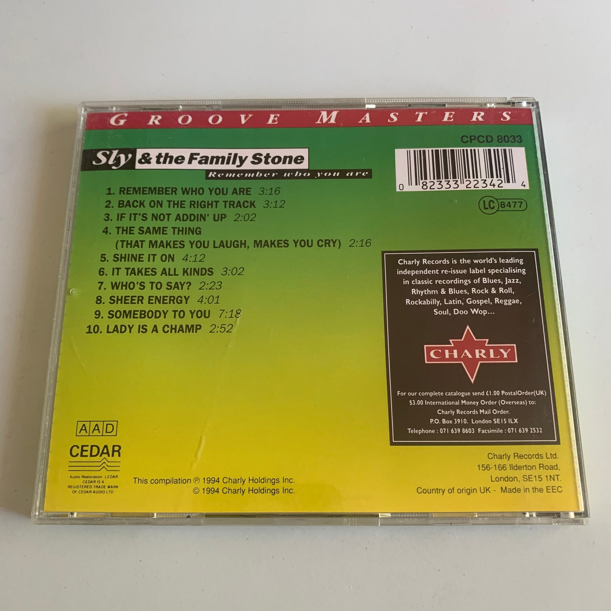Ce CD de Sly & The Family Stone est le parfait rappel de leur album de 1996, "Remember Who You Are". Avec des chansons intemporelles telles que "Family Affair" et "Everyday People", cette collection est un must pour tout fan de musique. Profitez de la qualité audio exceptionnelle et remémorez-vous de votre joie de vivre grâce à ces titres emblématiques.