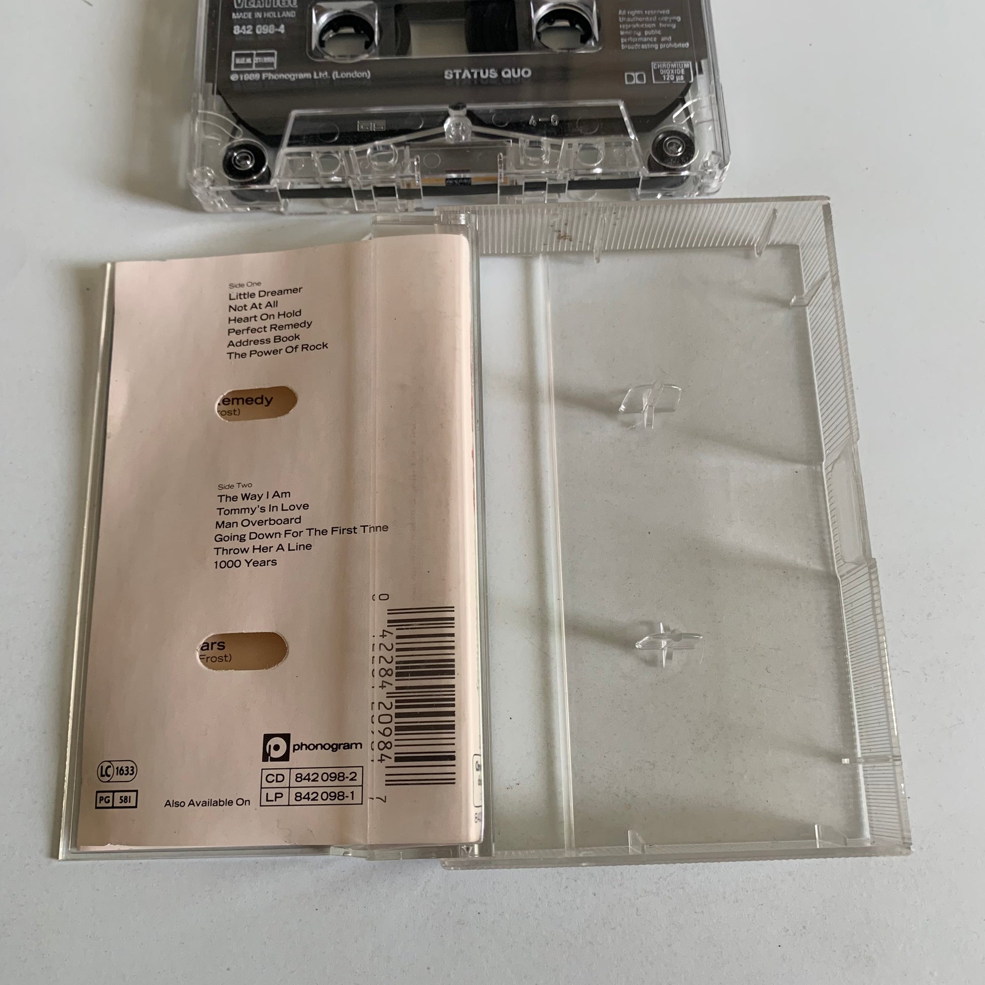 Profitez de votre musique préférée avec le cassette audio Status Quo - Perfect Remedy - 1989! Avec une qualité de son exceptionnelle, cet enregistrement vous emmènera dans un voyage nostalgique. Son design élégant en fait un élément de collection idéal pour les fans de musique et les collectionneurs.
