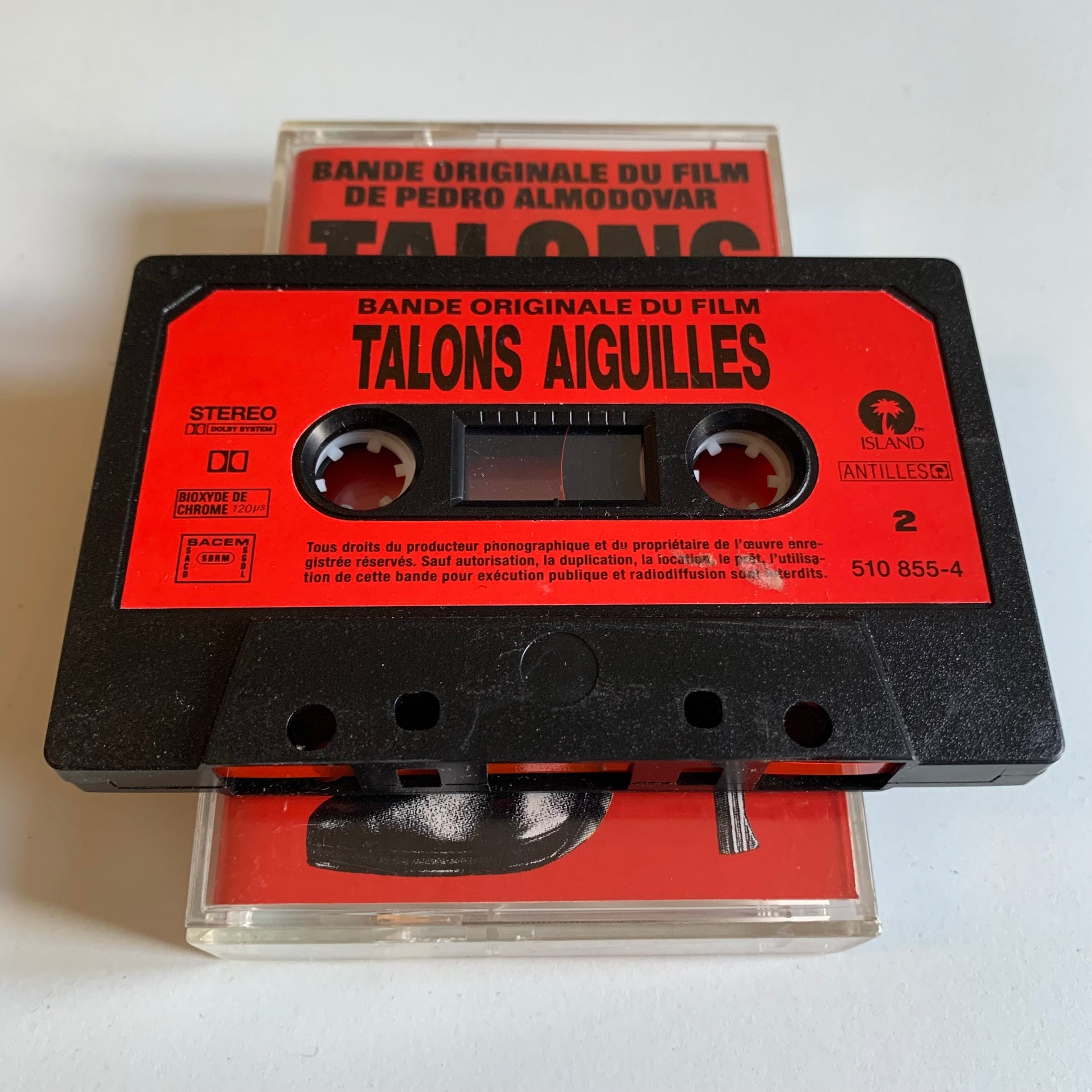 Découvrez la bande originale du film "Talons Aiguilles" réalisé par Pedro Almodovar en 1992. Cette cassette audio vous emmènera dans une atmosphère unique grâce à ses morceaux originaux. Faites-vous plaisir en écoutant ces musiques emblématiques du cinéma espagnol.