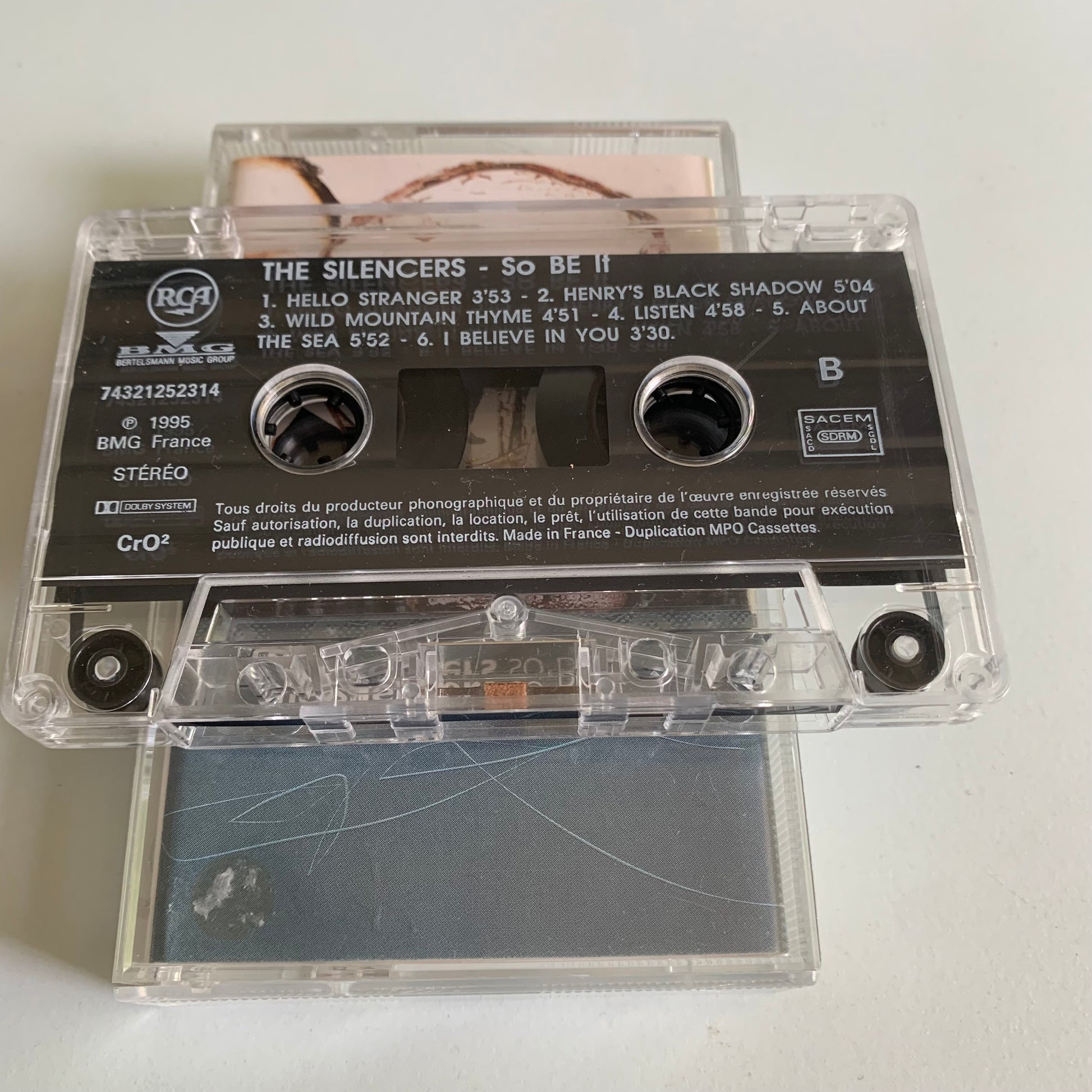 Ce cassette audio de 1995 comporte l'album "So Be It" des Silencers. Profitez du son de qualité et de la nostalgie de cet enregistrement de l'époque. Redécouvrez les hits de ce groupe écossais populaire, tel que "Wild Mountain Thyme". Une occasion à ne pas manquer pour les fans de musique des années 90.