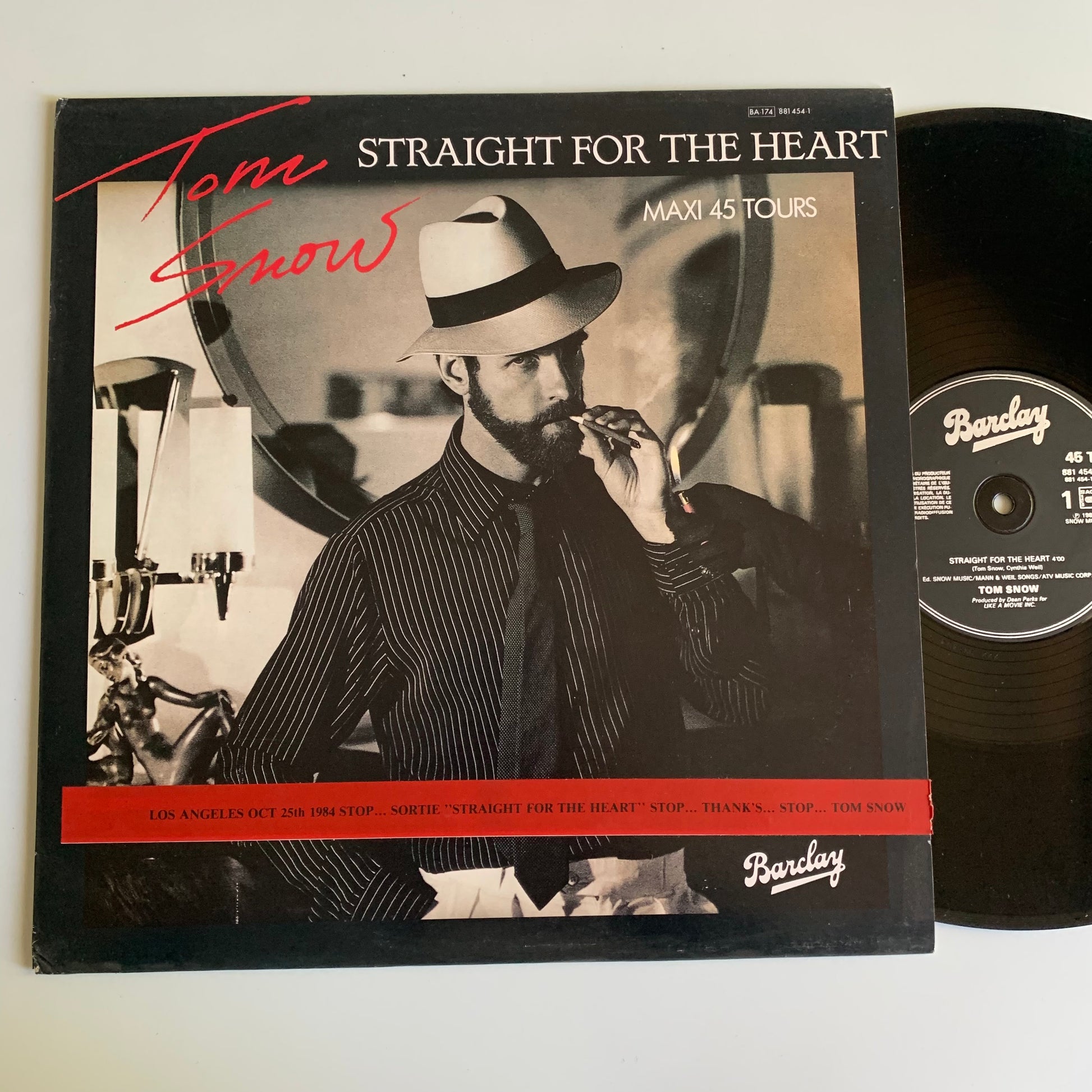 Tom Snow - Straight For The Heart - Maxi 45t. 1984 Occasion