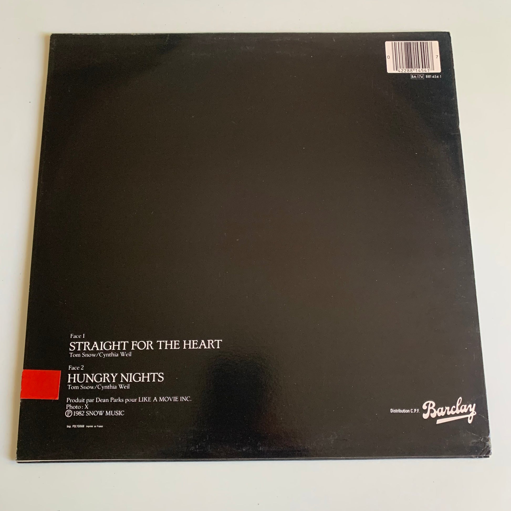 Ce vinyle rare, produit par Tom Snow en 1984, est une pièce de collection pour les fans de musique. Avec la chanson "Straight For The Heart", vous serez transporté à travers le temps grâce à sa qualité sonore exceptionnelle. Un must-have pour tout amateur de musique!