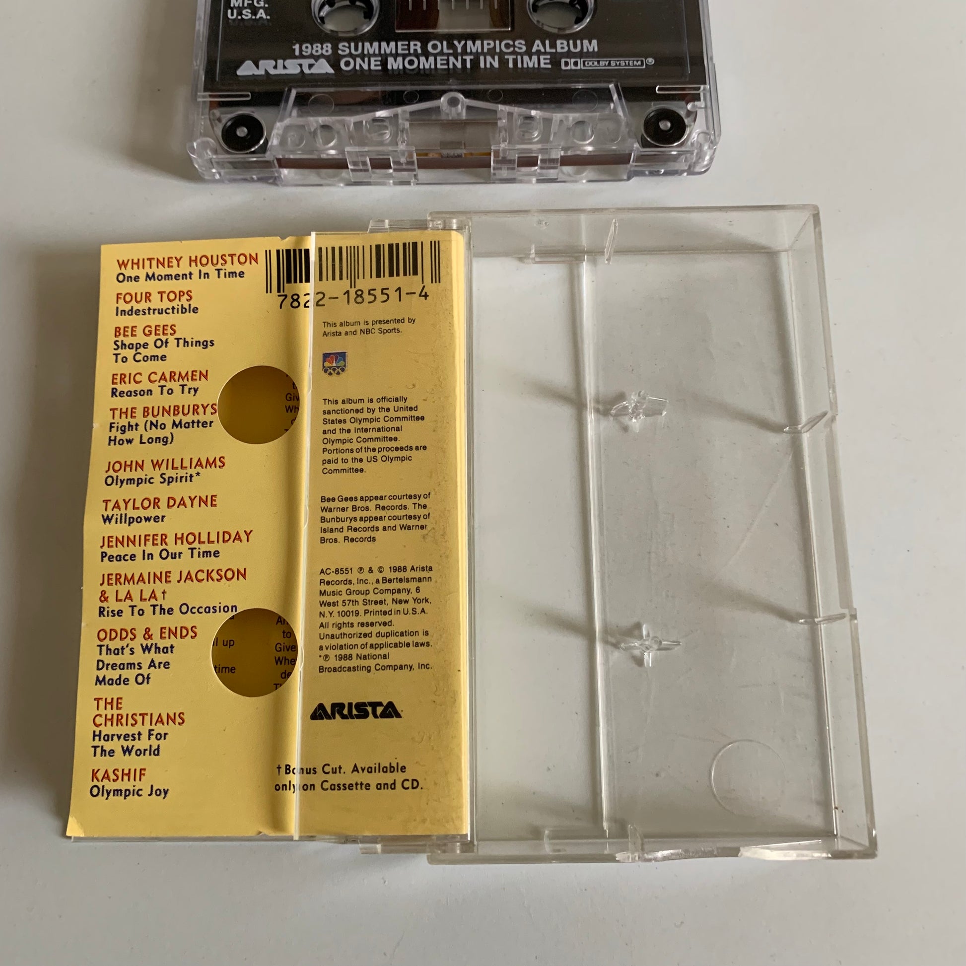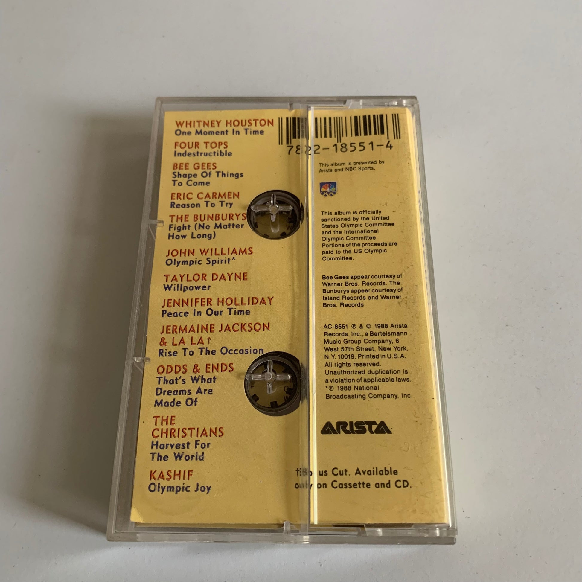 Cassette audio collector des Variétés pour les Jeux Olympiques d'été de 1988 : One Moment In Time. Voyagez dans les souvenirs de cette édition historique grâce à cet album incontournable. Plusieurs artistes ont participé, dont Whitney Houston, Bee Gees. Un moment unique à écouter encore et encore.