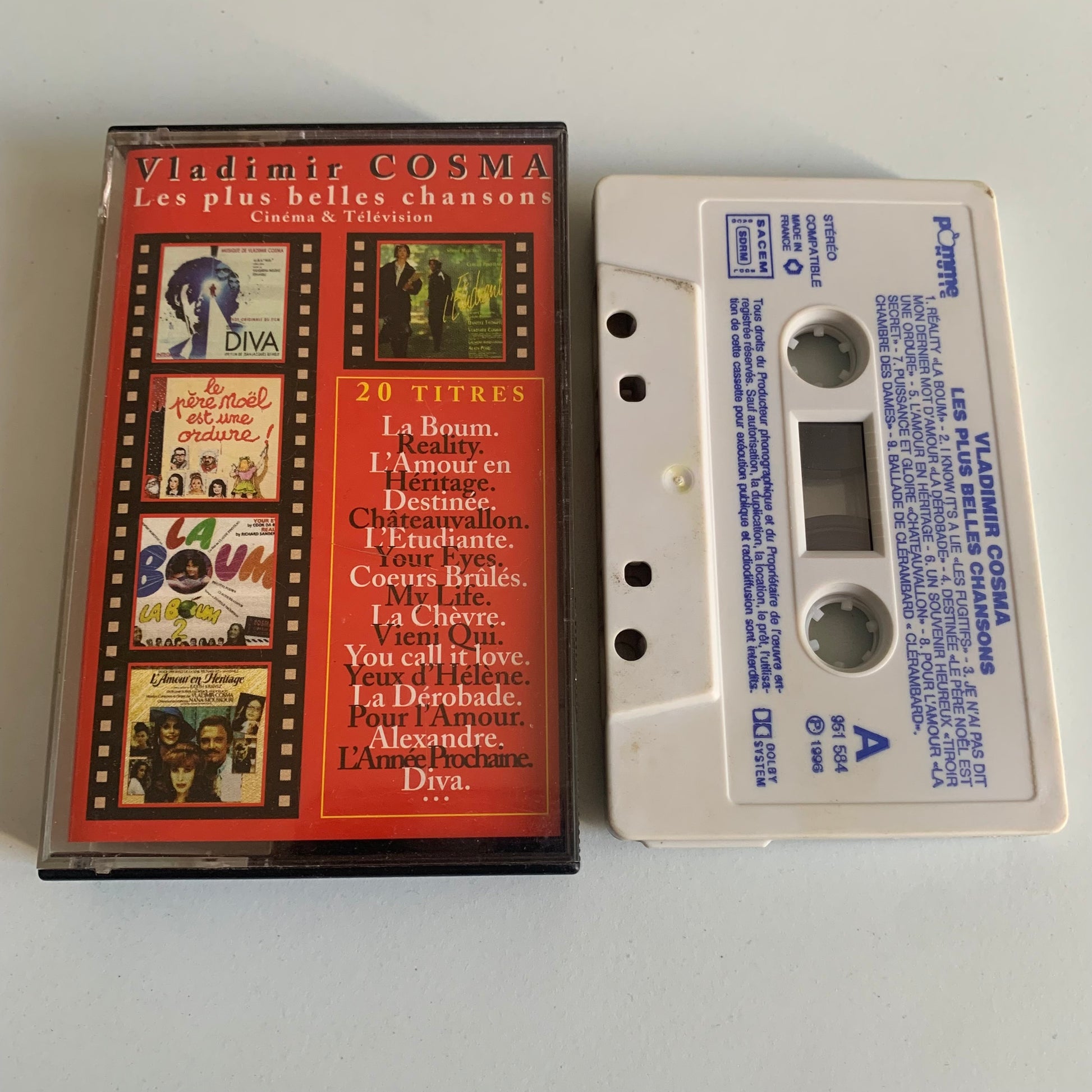 Découvrez les merveilleuses chansons de films et de télévision de Vladimir Cosma avec cette cassette audio de 1995. Profitez de la musique intemporelle et de la maîtrise de composition de Cosma pour une expérience auditive unique et mémorable. Disponible en édition limitée d'occasion.