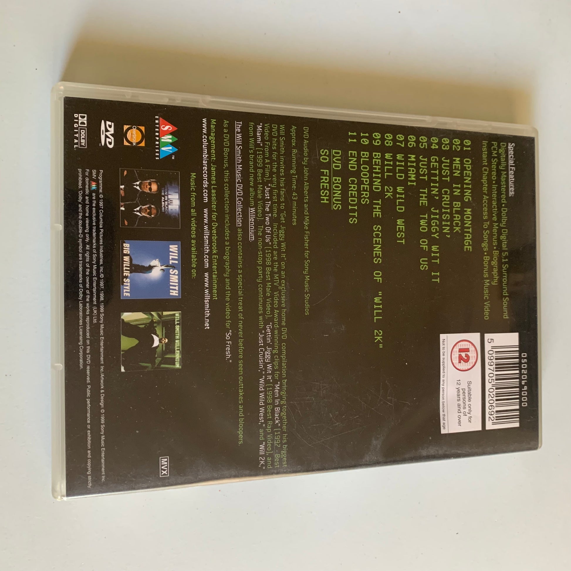 Cette collection de DVD comprend les vidéos musicales de Will Smith, sorties en 1999. Profitez de performances époustouflantes et de vidéos originales avec des chansons à succès comme "Wild Wild West" et "Gettin' Jiggy Wit It". Replongez dans la musique de cette époque grâce à ces vidéos de haute qualité.