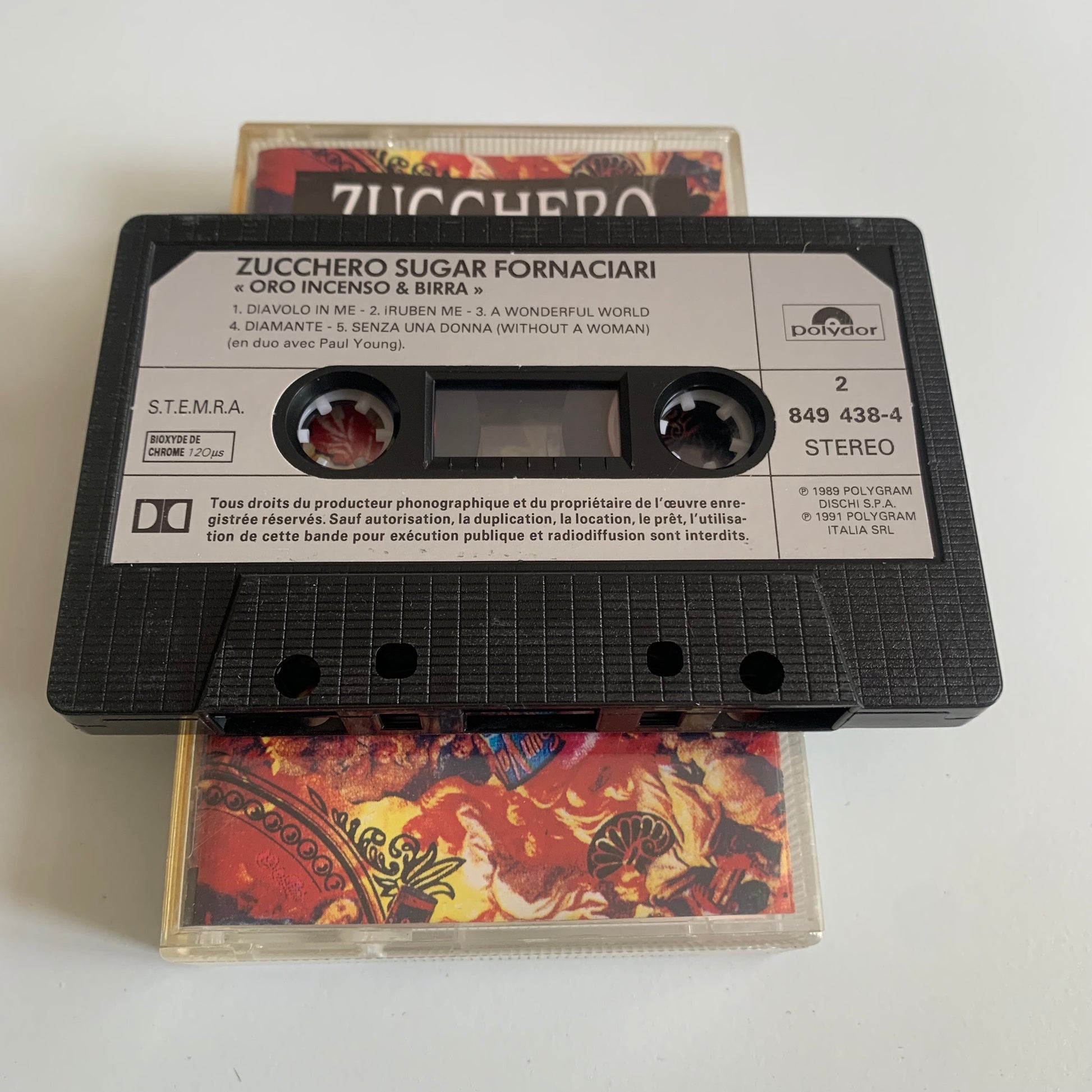 Profitez de la musique de Zucchero Sugar Fornaciari avec la cassette audio "Oro Incenso & Birra - 1989" ! Découvrez ou redécouvrez ses tubes légendaires et laissez-vous emporter par la voix unique de cet artiste italien. Un must-have pour tous les amateurs de musique !